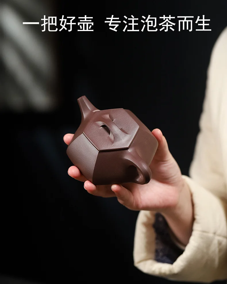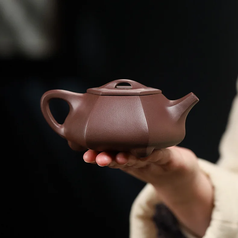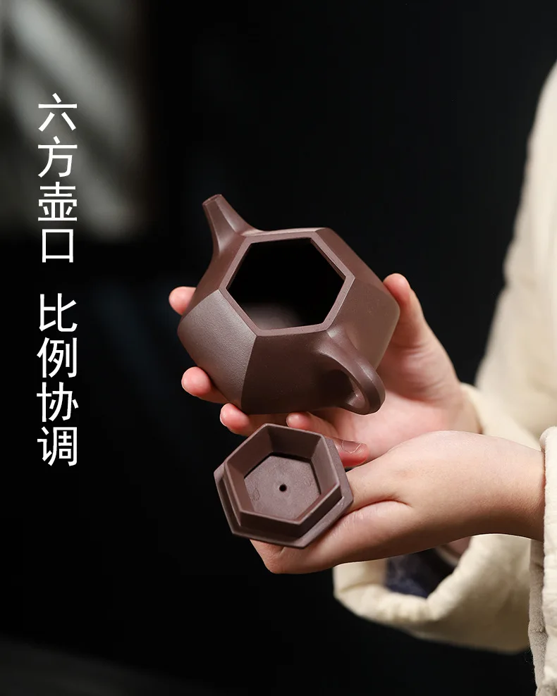 「六方石瓢 · HexaScoop」 — 200ml Handmade Yixing Purple Clay Teapot | Hexagonal Stone Scoop Form · Raw Ore Zisha · Vintage Gongfu Teaware Gift Edition
