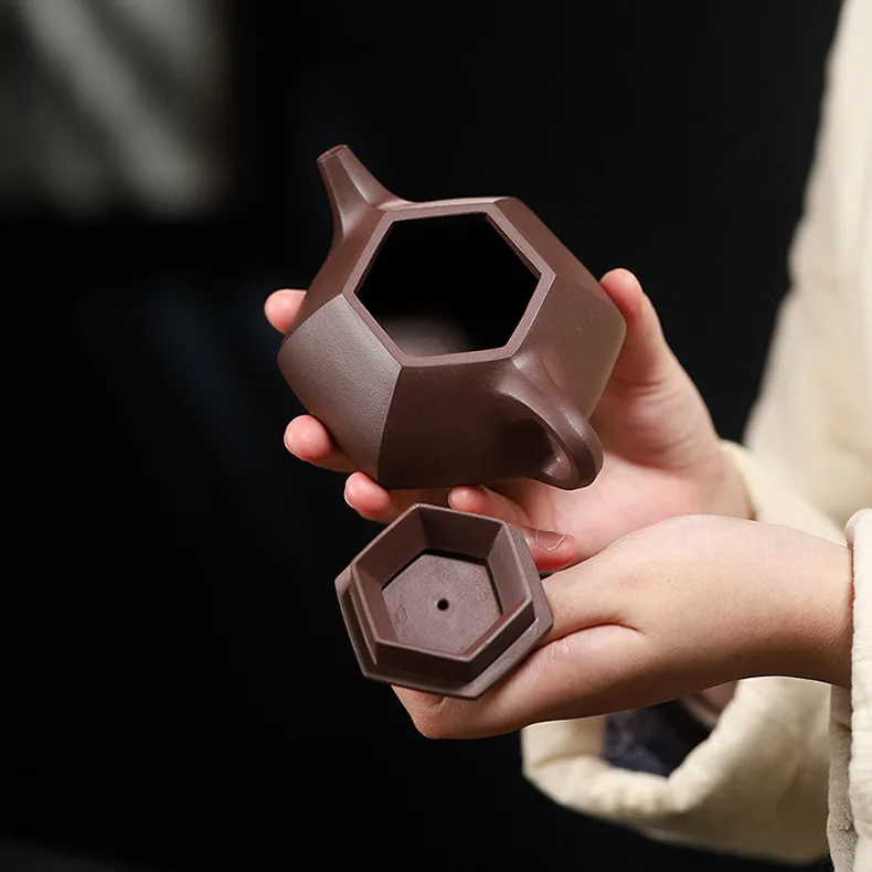 A teapot of architectural elegance and elemental strength, this 200ml Hexagonal Stone Scoop vessel—crafted from raw ore Zisha clay—offers a bold, high-fired brewing experience. Designed for Gongfu rituals and collector gifting, it merges geometric clarity with traditional craftsmanship.
