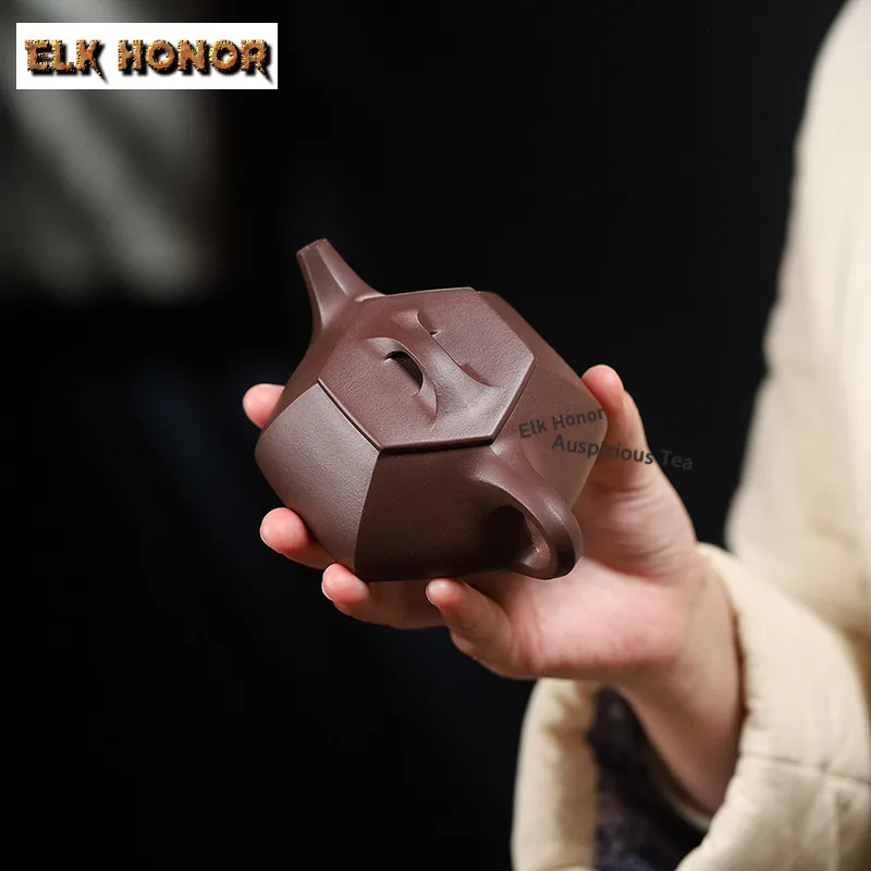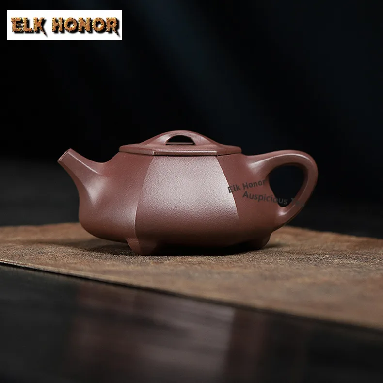 「六方石瓢 · HexaScoop」 — 200ml Handmade Yixing Purple Clay Teapot | Hexagonal Stone Scoop Form · Raw Ore Zisha · Vintage Gongfu Teaware Gift Edition