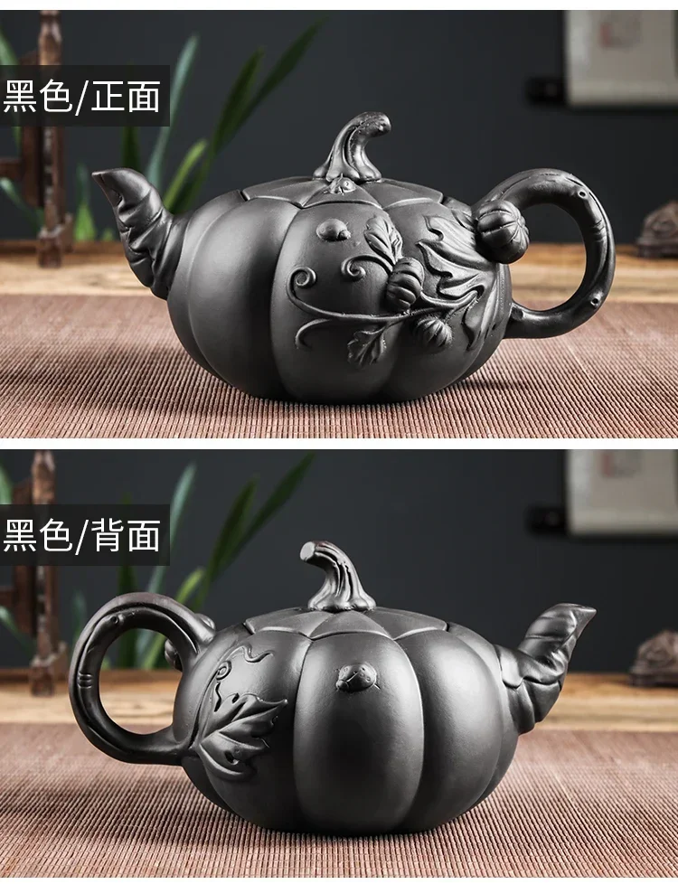 Design Highlight: The teapot’s body is segmented like a pumpkin, with sculpted botanical details that wrap around the form. The spout and handle mimic curling tendrils, while the lid is crowned with a stem-like knob—each element hand-carved to evoke the vitality of autumn harvest.