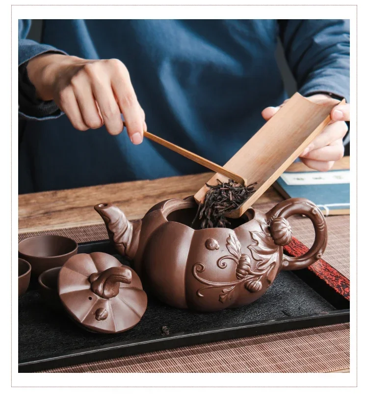 Its pumpkin-inspired form, Zhu Ni clay body, and large capacity make it a joyful and rare piece. - Why is this teapot ideal for gatherings?