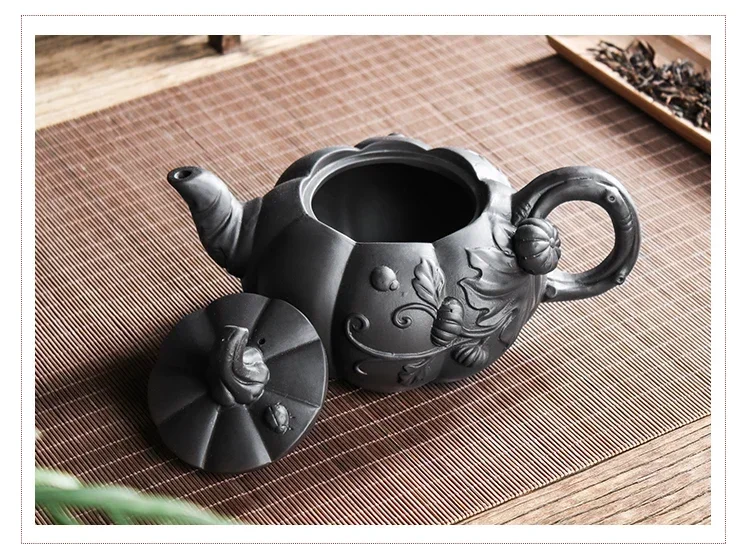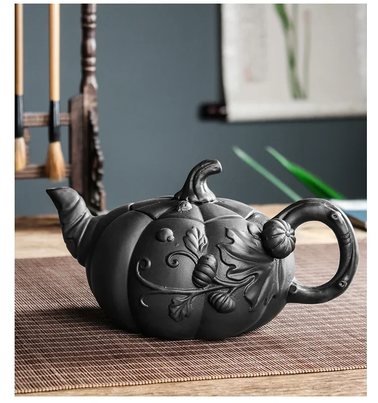 This teapot is shaped and carved entirely by hand, with each vine, leaf, and curve reflecting the artisan’s deep connection to nature and tradition.