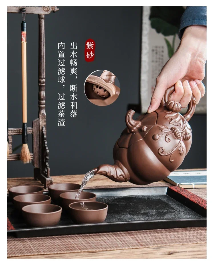 「南瓜壶 · Autumn Gourd」 — 780ml Handmade Yixing Purple Clay Teapot (Zhu Mud · Sculptural Pumpkin Form · Large-Capacity Folk Artisan Work)