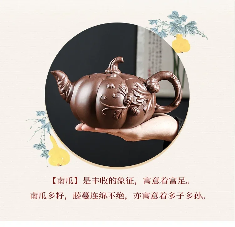 In Chinese folk culture, pumpkins symbolize abundance, fertility, and auspiciousness. Their round, full form and many seeds represent prosperity and family harmony, making them a popular motif in seasonal and celebratory teaware.