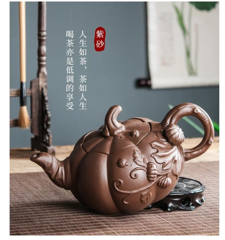 「紫蔓壶 · Vine of Clay」 — 260ml Handmade Yixing Purple Clay Teapot (Original Ore Zisha · Pumpkin Form · Famous Artisan Work)