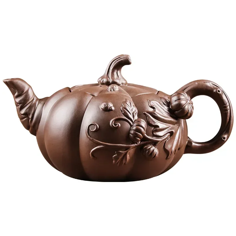 「南瓜壶 · Autumn Gourd」 — 780ml Handmade Yixing Purple Clay Teapot (Zhu Mud · Sculptural Pumpkin Form · Large-Capacity Folk Artisan Work)