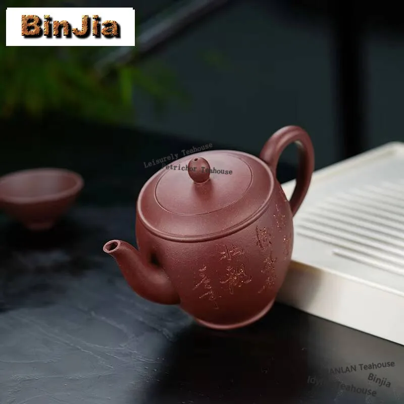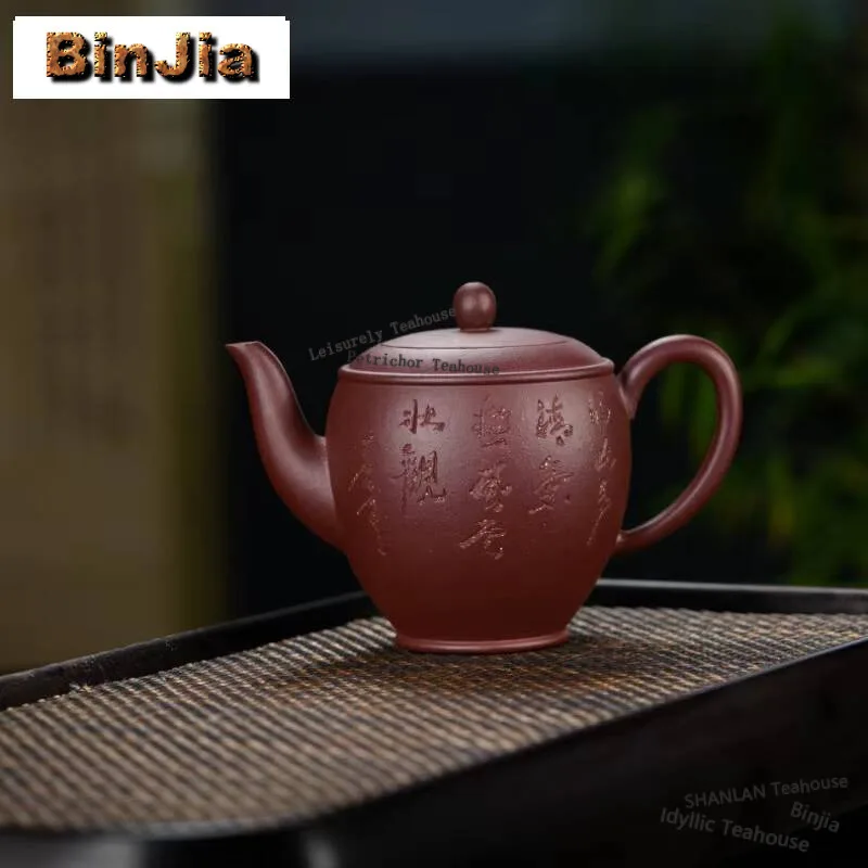 「大刻壶 · Grand Script」 — 540ml Handmade Yixing Purple Clay Teapot (Raw Ore Purple Mud · Large Capacity · Calligraphy Engraving)
