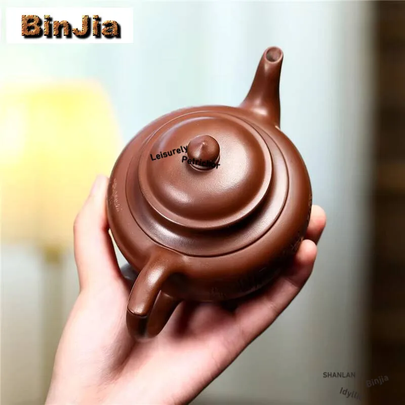 「朱影壶 · Ombre Ancienne」 — 190ml Handmade Yixing Purple Clay Teapot | Raw Ore Zhu Mud · Classic Gongfu Kettle with Strainer · Zisha Tea Set Ornament