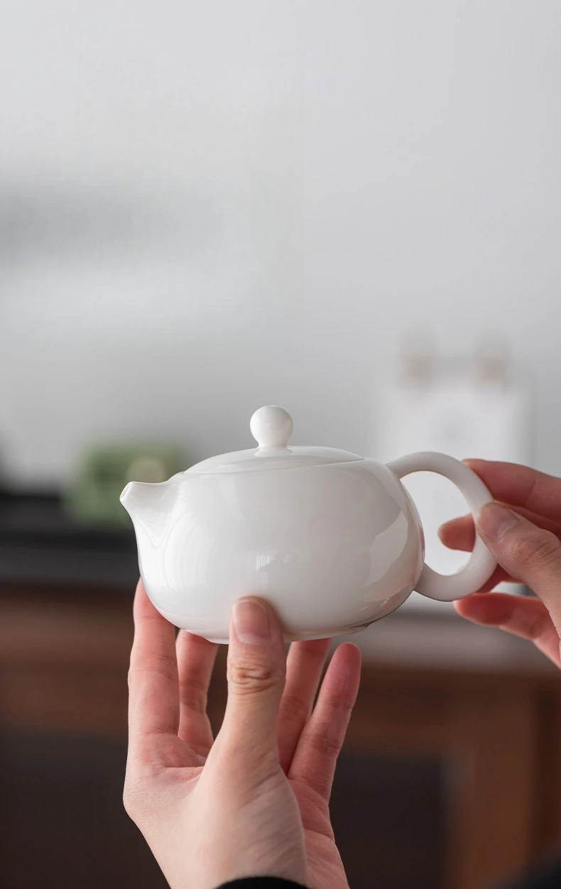 「扁影西施壶 · Flat Grace」 — 200ml Handmade Dehua White Porcelain Teapot (Flattened Xishi Form · Built-in Infuser · Minimalist Gongfu Kettle)
