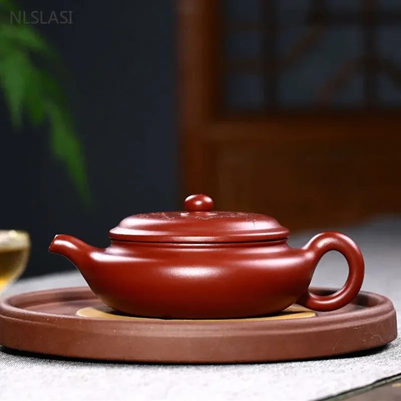 「扁古壶 · Flat Antiquity」 — 230ml Handmade Yixing Purple Clay Teapot (Original Ore Da Hong Pao Clay · Classical Flattened Form · Gongfu Brewing Pot)