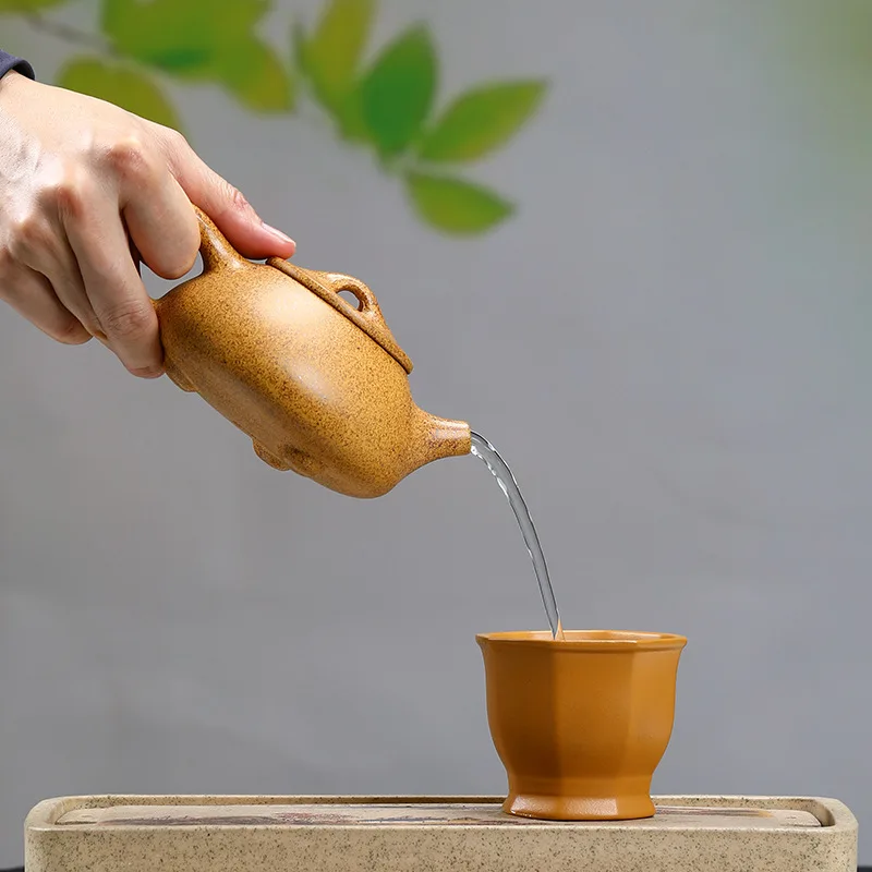 This piece is crafted from Duan Ni, a yellowish Zisha clay prized for its mineral richness and moderate porosity. The clay is reduction-fired to deepen its tone and enhance its breathability, resulting in a speckled, sand-like surface that feels both ancient and elemental.