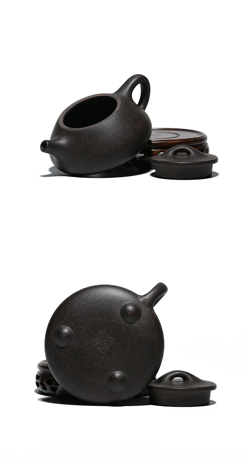 Zisha clay is rich in iron and mineral particles, giving the body its porous structure and natural warmth. These qualities allow the teapot to absorb tea oils and evolve with use, enhancing aroma and flavor.