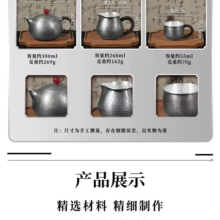 「雅聚银礼 · Gilt Ya Ju Set」 — 999 Sterling Silver Tea Set (Gilded Accents · Japanese Style · Kettle + Fair Cup + Cups · Gift Box Presentation)
