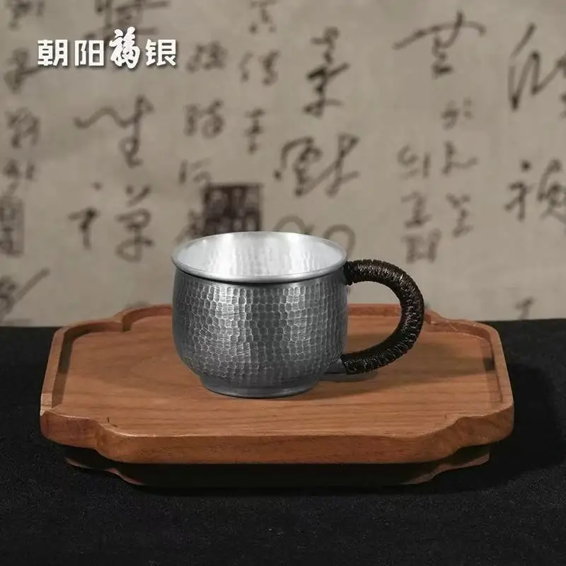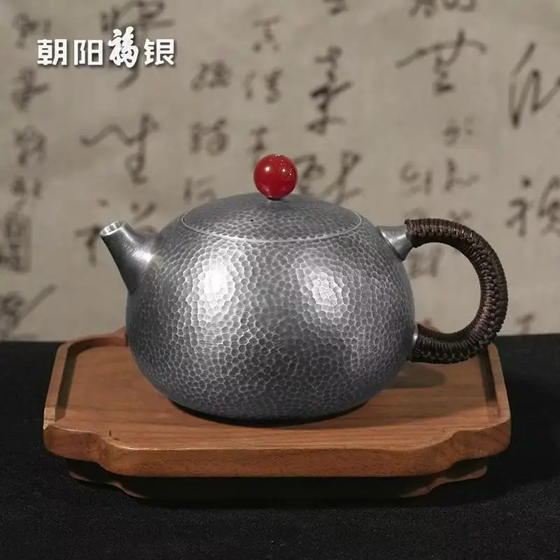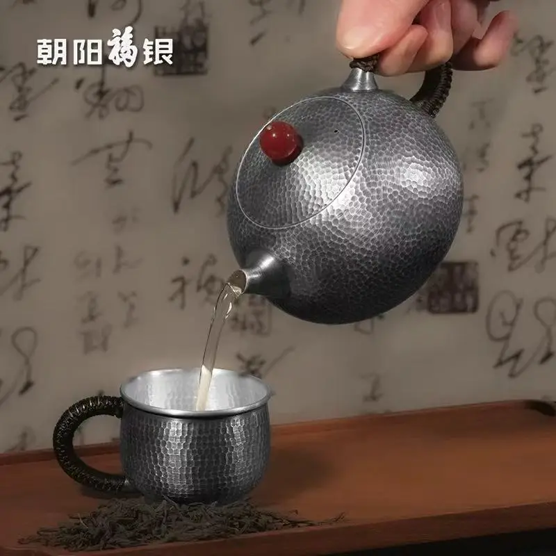 「福云壶 · Auspicious Cloud」 — 300ml Handmade 999 Sterling Silver Teapot (Engraved Blessing Character · Cloud Motif · Gongfu Brewing Vessel)