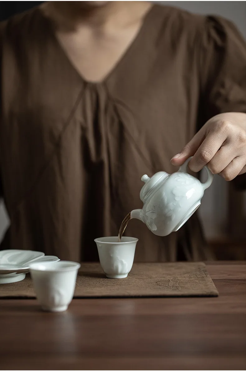 Design Highlight: The floral relief blooms gently across the surface like spring mist on a garden wall, while the Gongchun silhouette offers a grounded, organic presence in the hand.