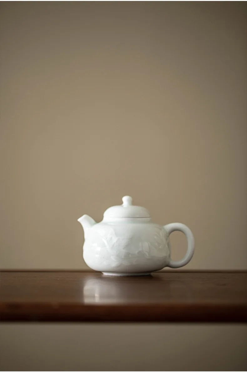 「羊脂玉瓷壶 · Cloudglow」 — 90ml Sheep Fat Jade Porcelain Teapot (Handmade Miniature Gongfu Pot · Built-in Filter · Household & Travel-Friendly Brewing Vessel)