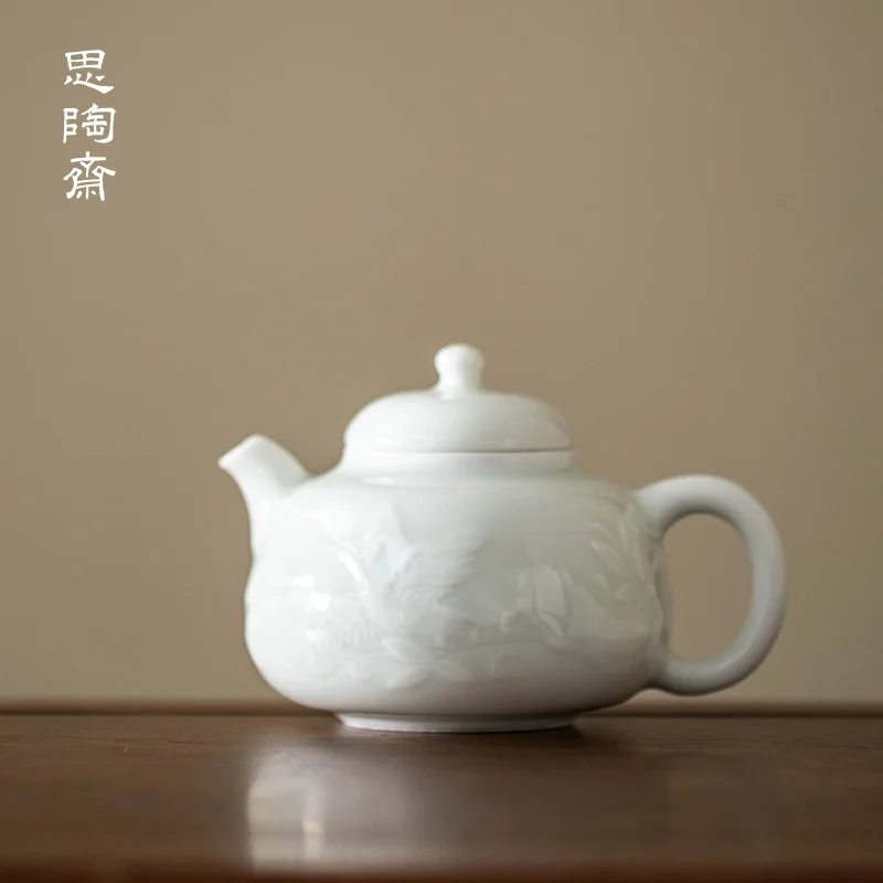 The Blossom Spring 花供春影青壶 is a 180ml porcelain teapot crafted in the traditional Gongchun form, finished with a soft Yingqing glaze and adorned with delicate floral embossing. Inspired by Song dynasty aesthetics and literati tea culture, this teapot features a built-in ceramic ball mesh filter, making it ideal for Gongfu-style brewing at home. The pale celadon hue and sculptural relief evoke a sense of quiet refinement and seasonal renewal.