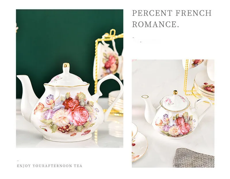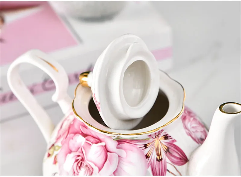 「蔷薇瓷壶 · Rosebridge」 — 900ml European Ceramic Teapot (English Afternoon Tea Style · Heat-Resistant Porcelain · High-Capacity Coffee & Tea Kettle)