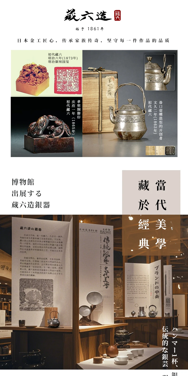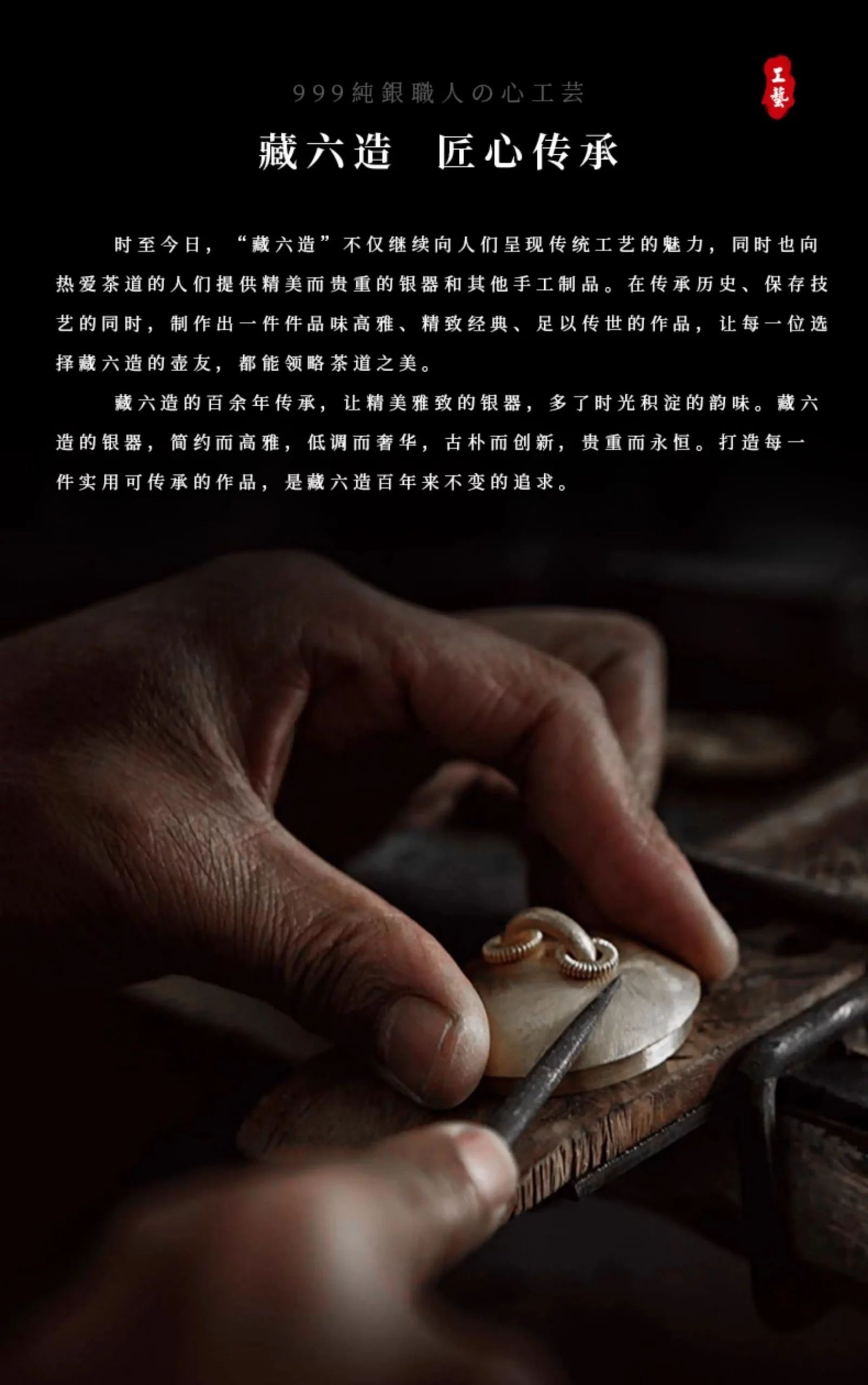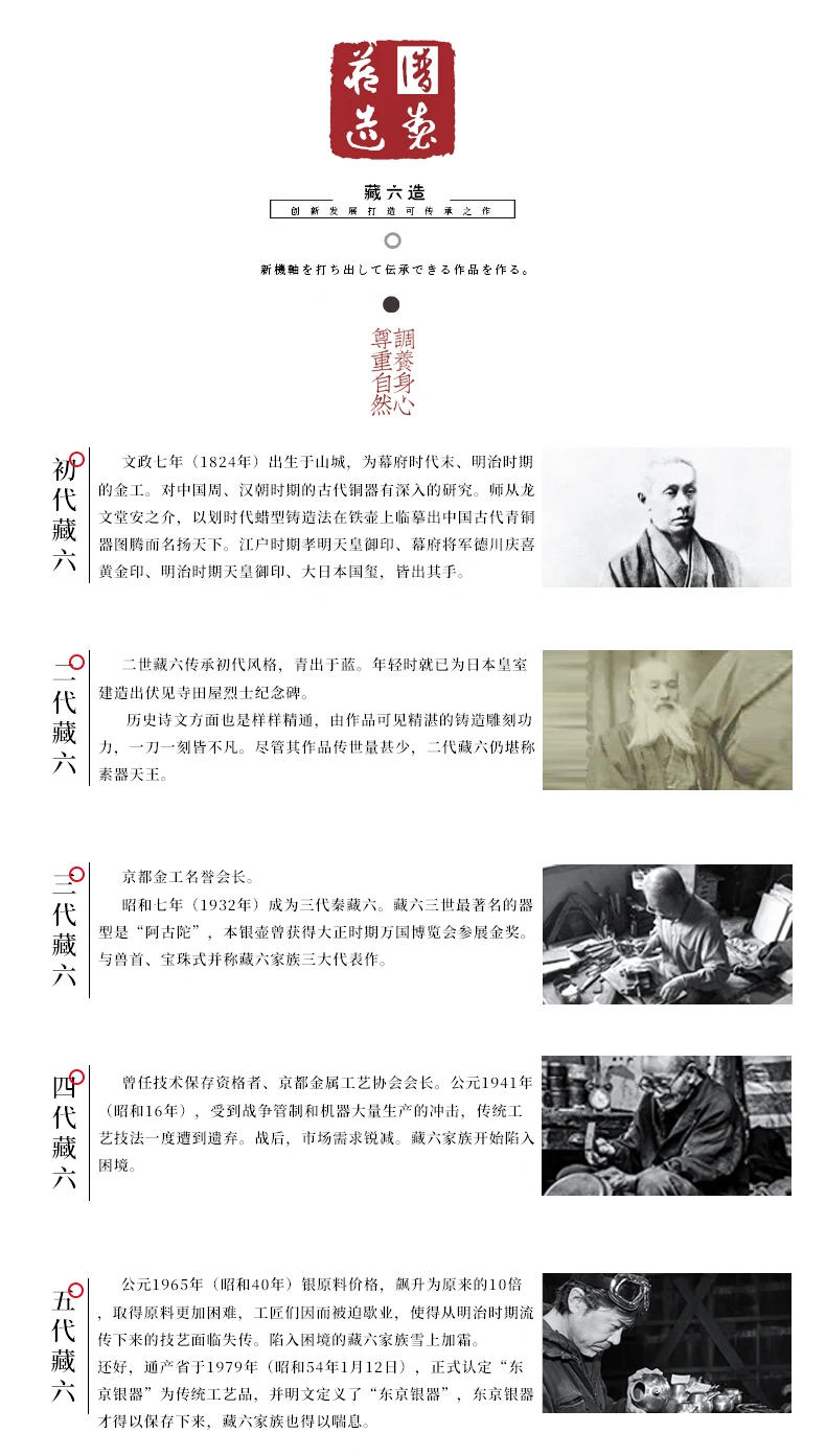 The red seal “藏六造” signifies a lineage of craftsmanship rooted in traditional metalwork, honoring the legacy of master artisans.