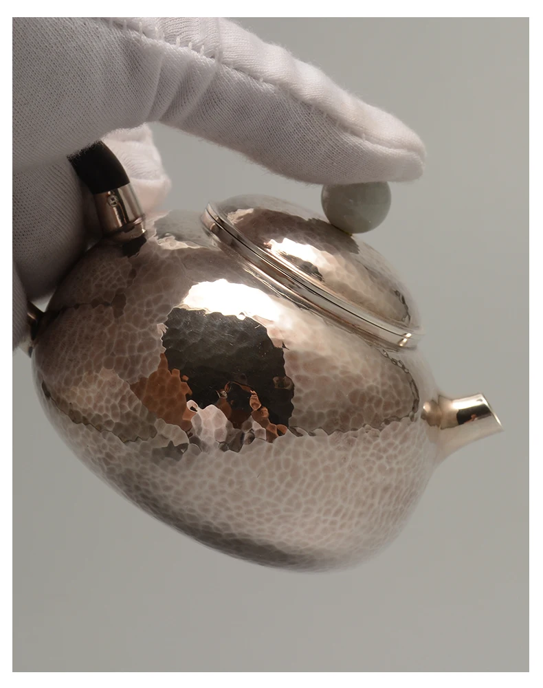 「玉柄西施壶 · Jade Whisper」 — 250ml Handmade 999 Sterling Silver Teapot (Xishi Form · Jade Handle · Chinese Gongfu Tea Set)