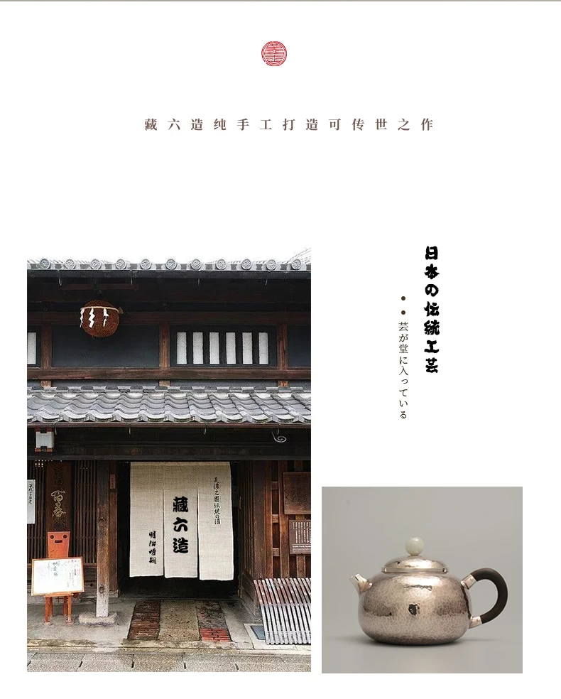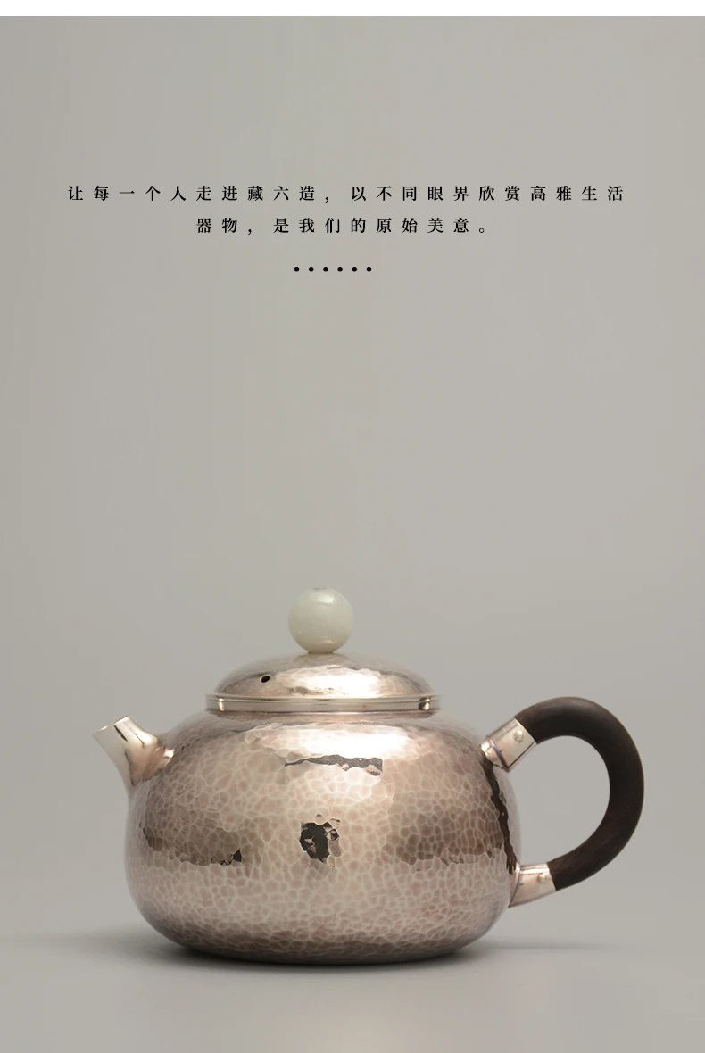 Design Highlight: The teapot’s name references “藏六” (Zangroku), a mark of artisanal lineage and reverence for traditional silverwork. The geometric surface pattern and jade finial elevate this piece from functional teaware to a sculptural heirloom.