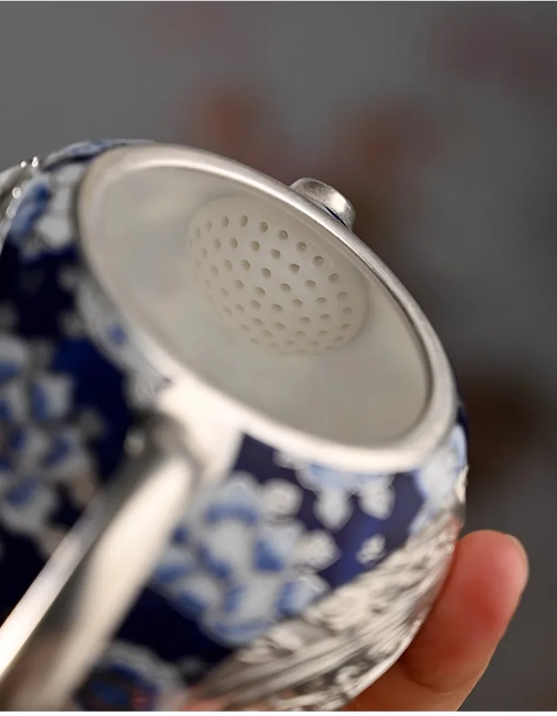 Yes. It combines certified 999 sterling silver with traditional blue-and-white porcelain. - Can I boil water in this teapot?