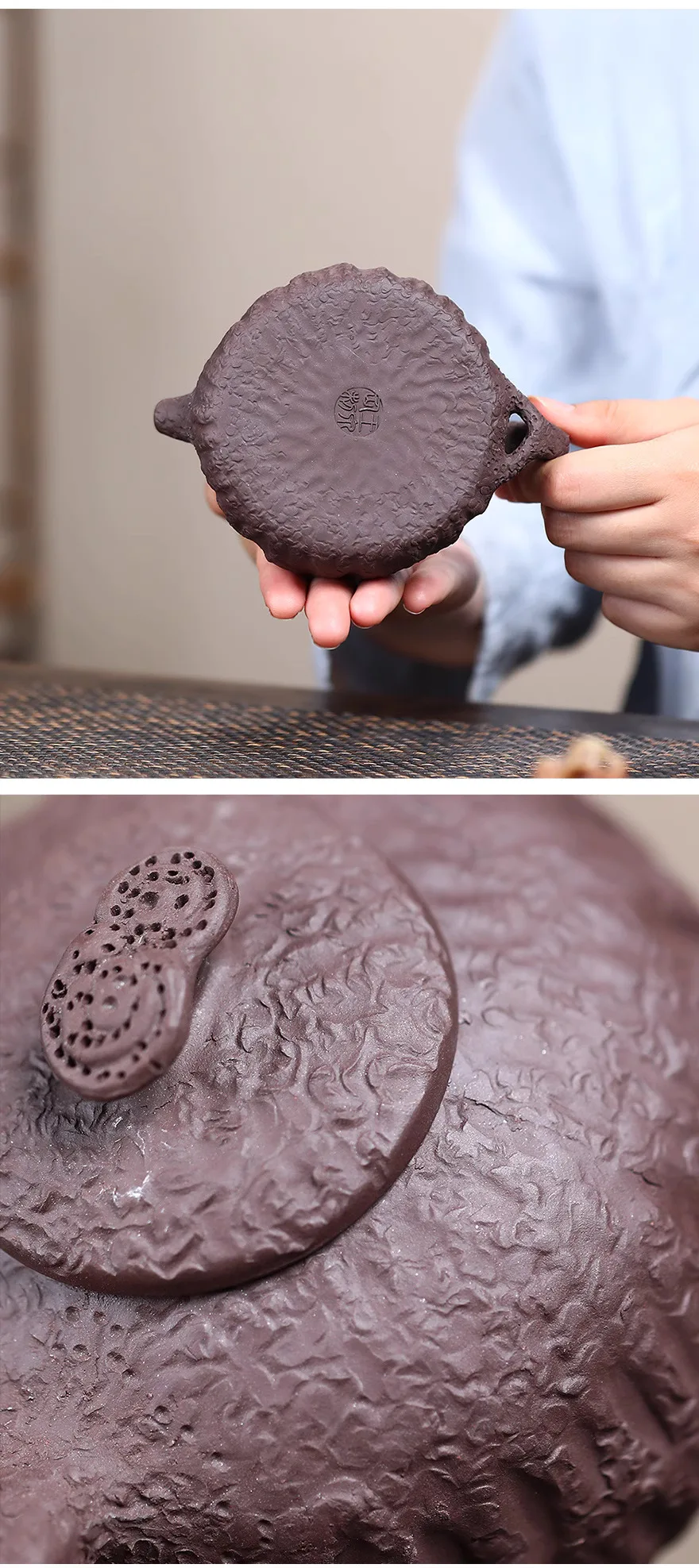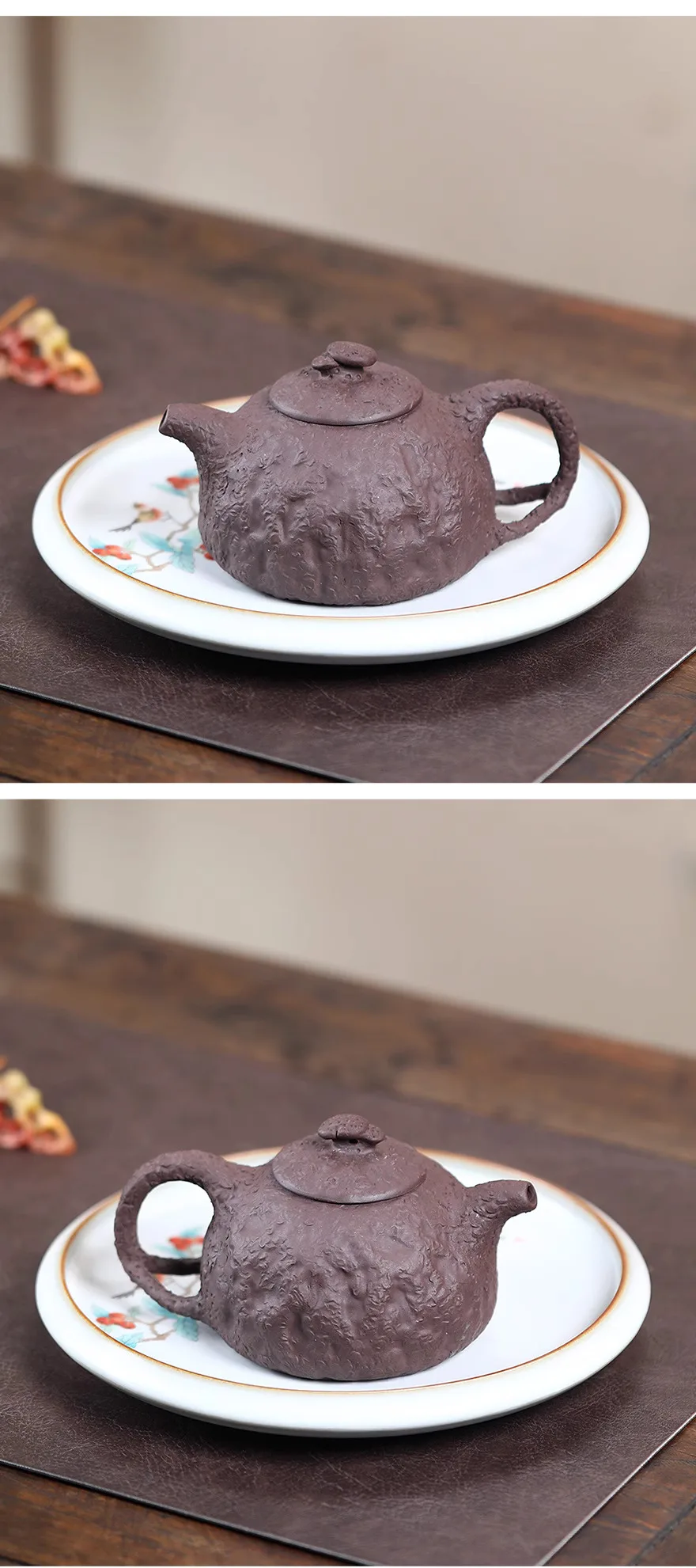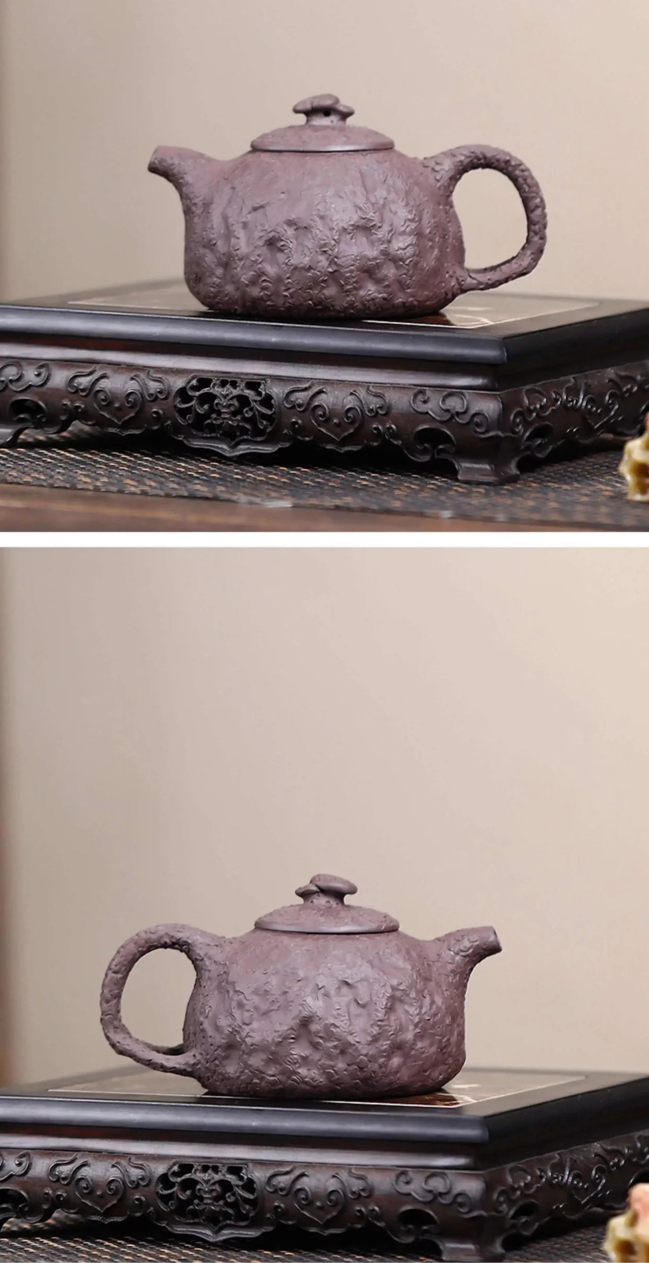 The rugged, bark-like texture and grounded form recall the earliest Yixing teapots, where natural inspiration and humble materials gave rise to timeless design.