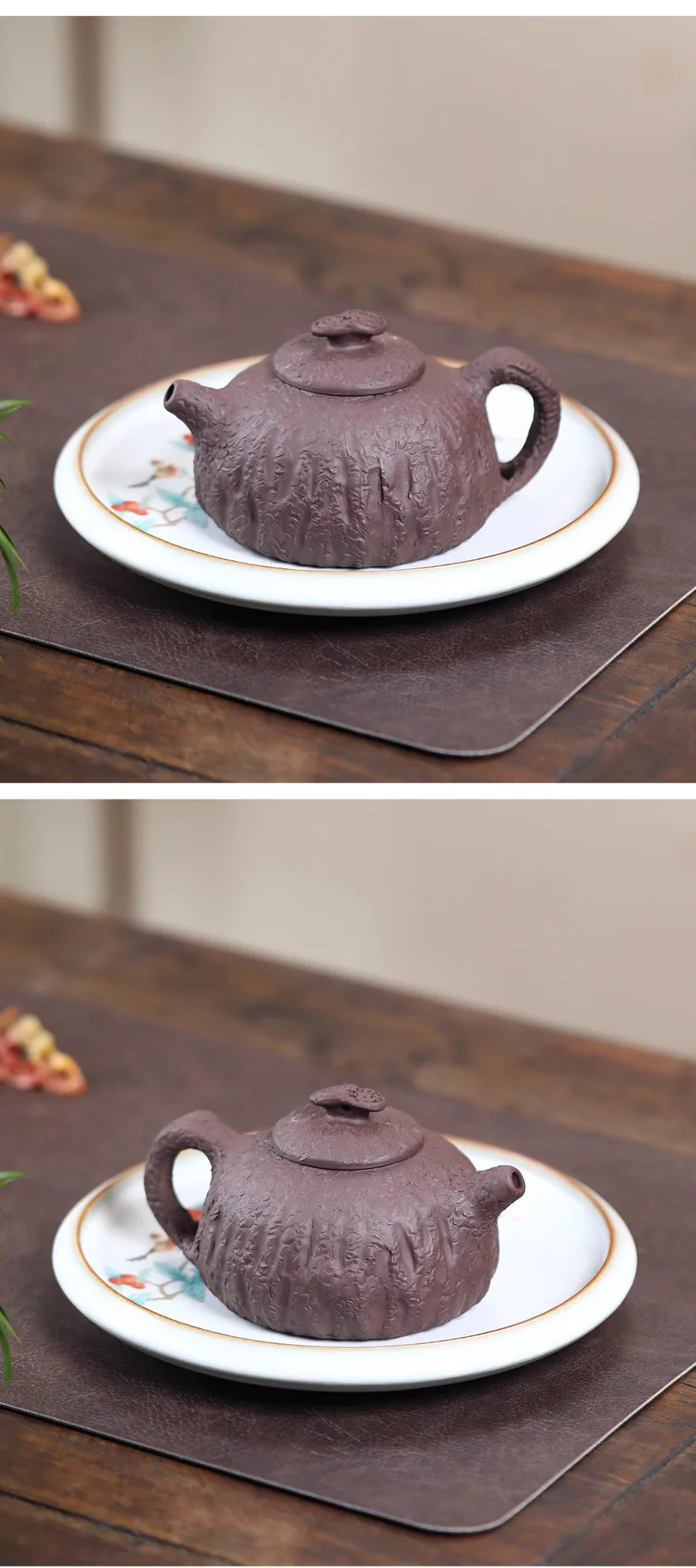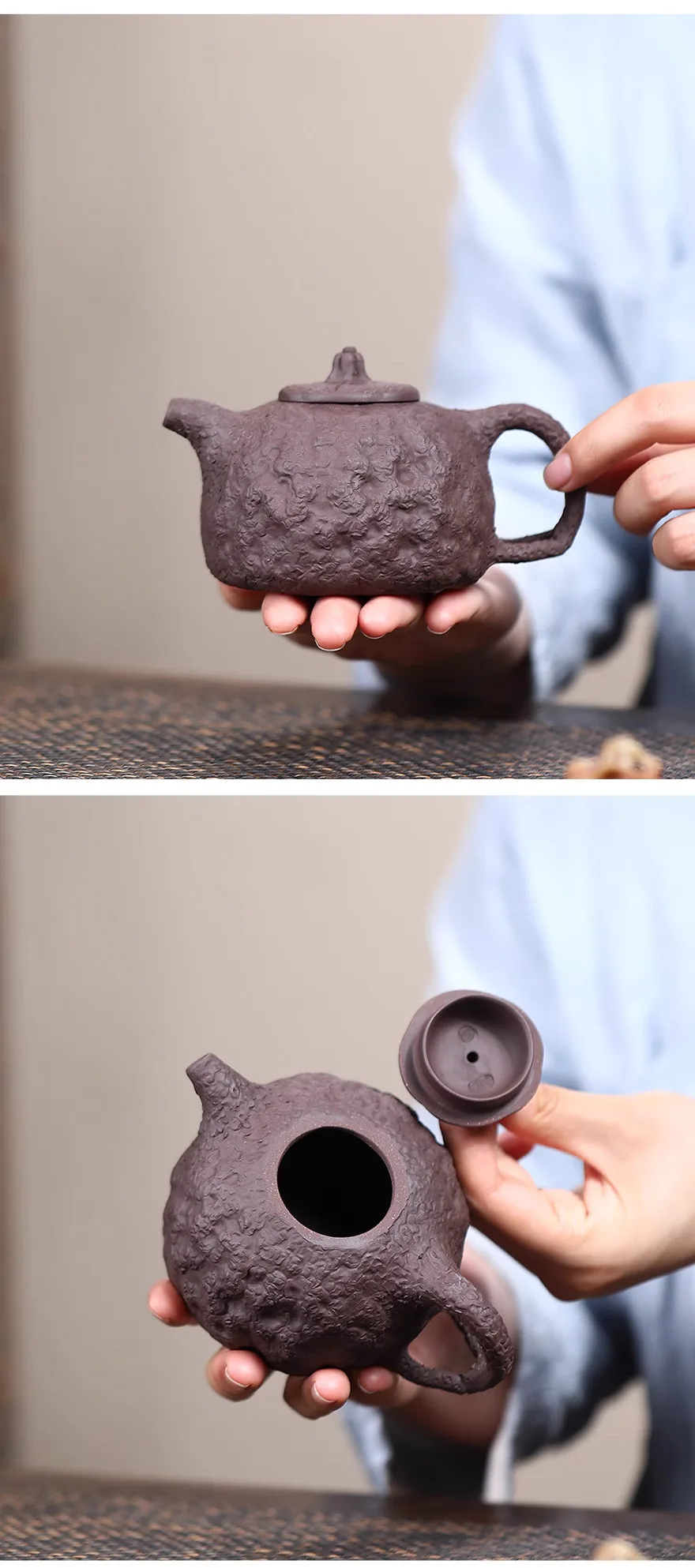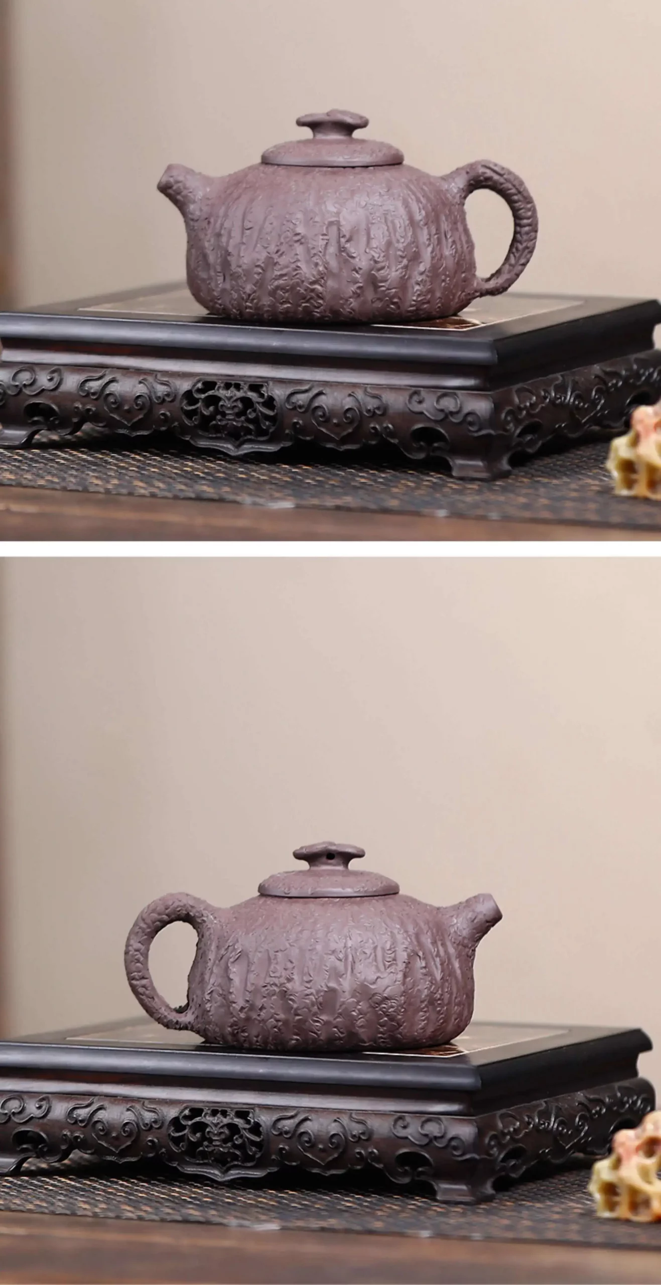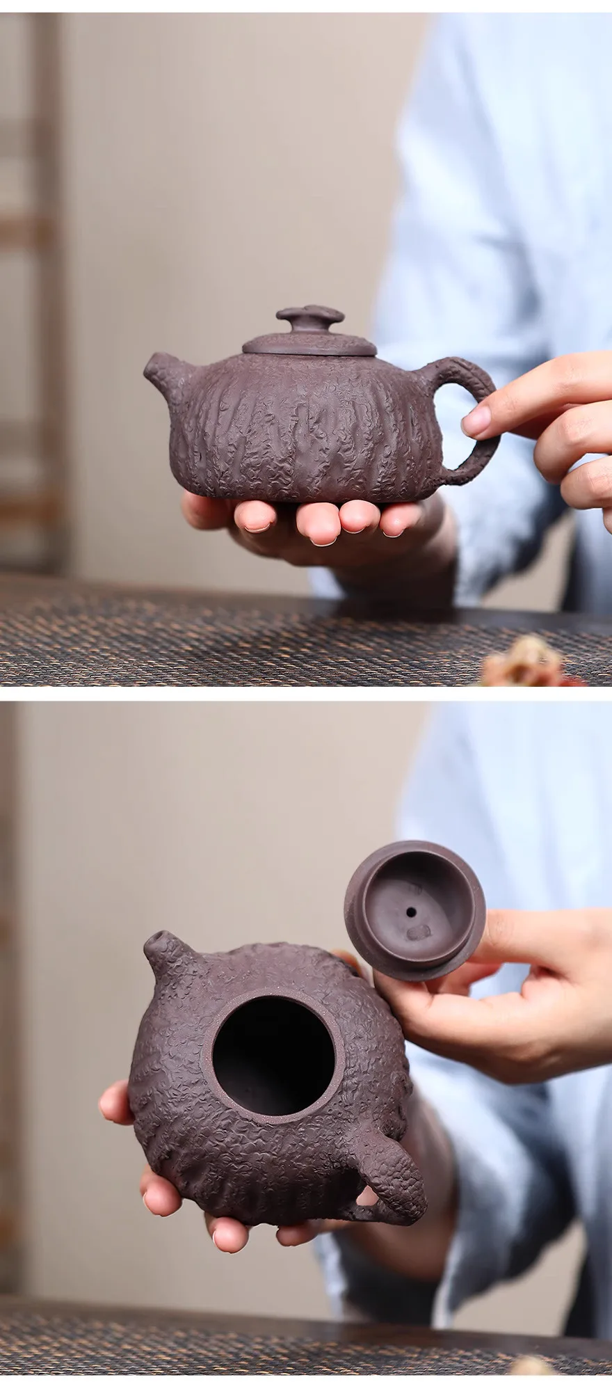 The rugged, bark-like texture and grounded form recall the earliest Yixing teapots, where natural inspiration and humble materials gave rise to timeless design.