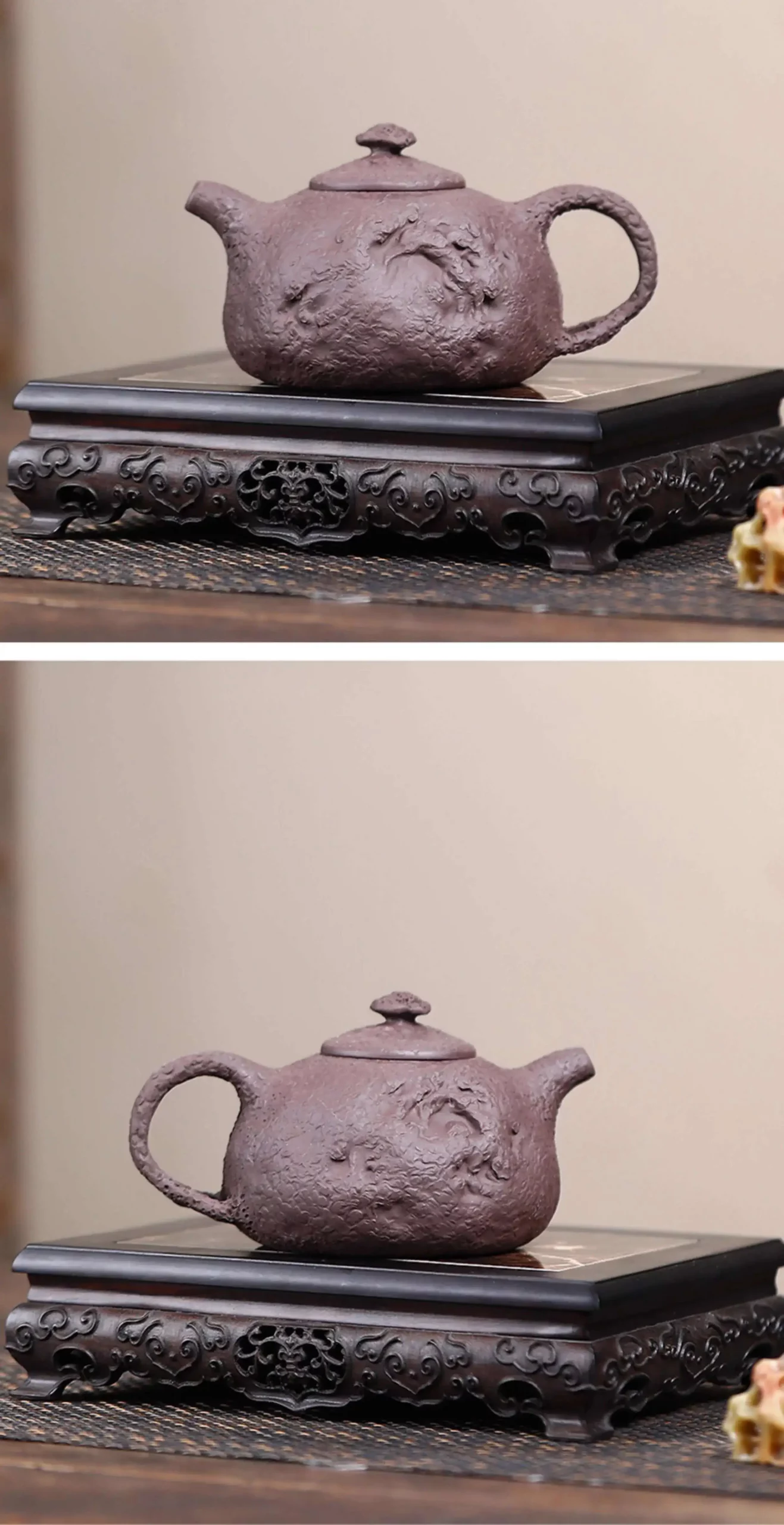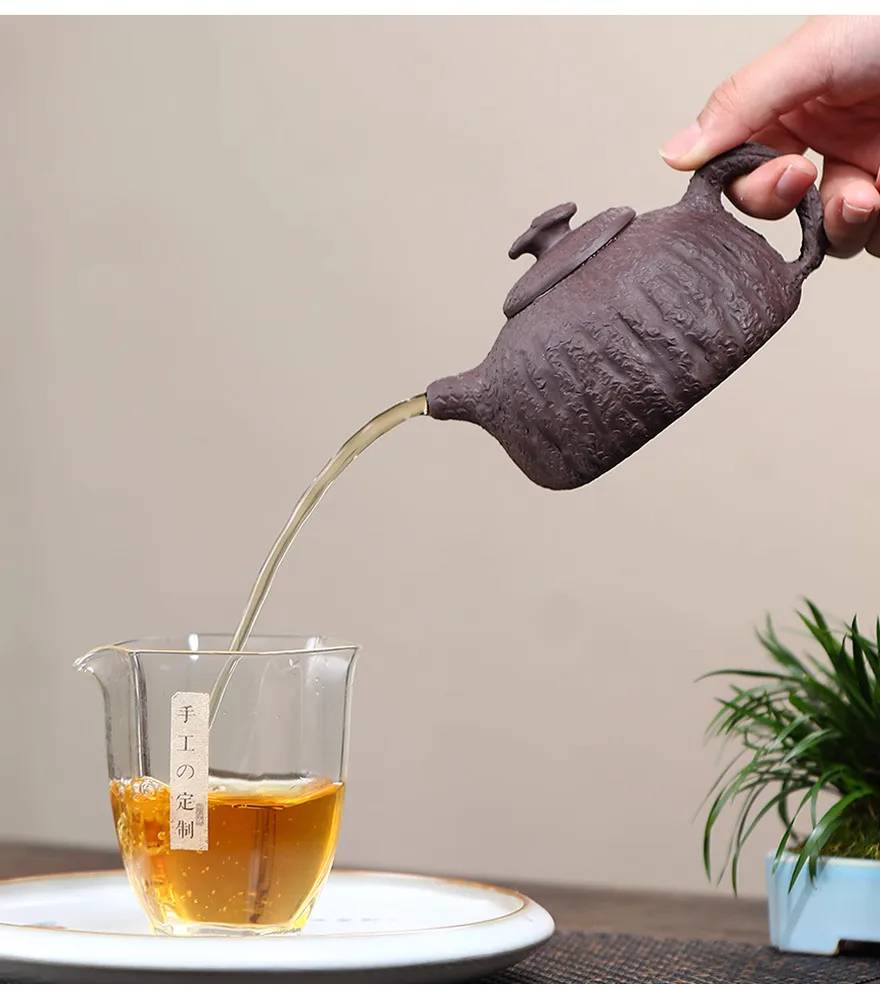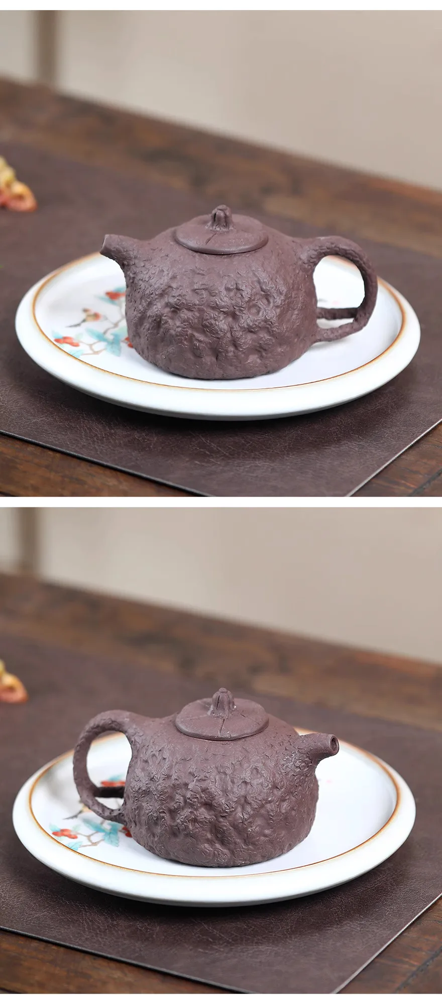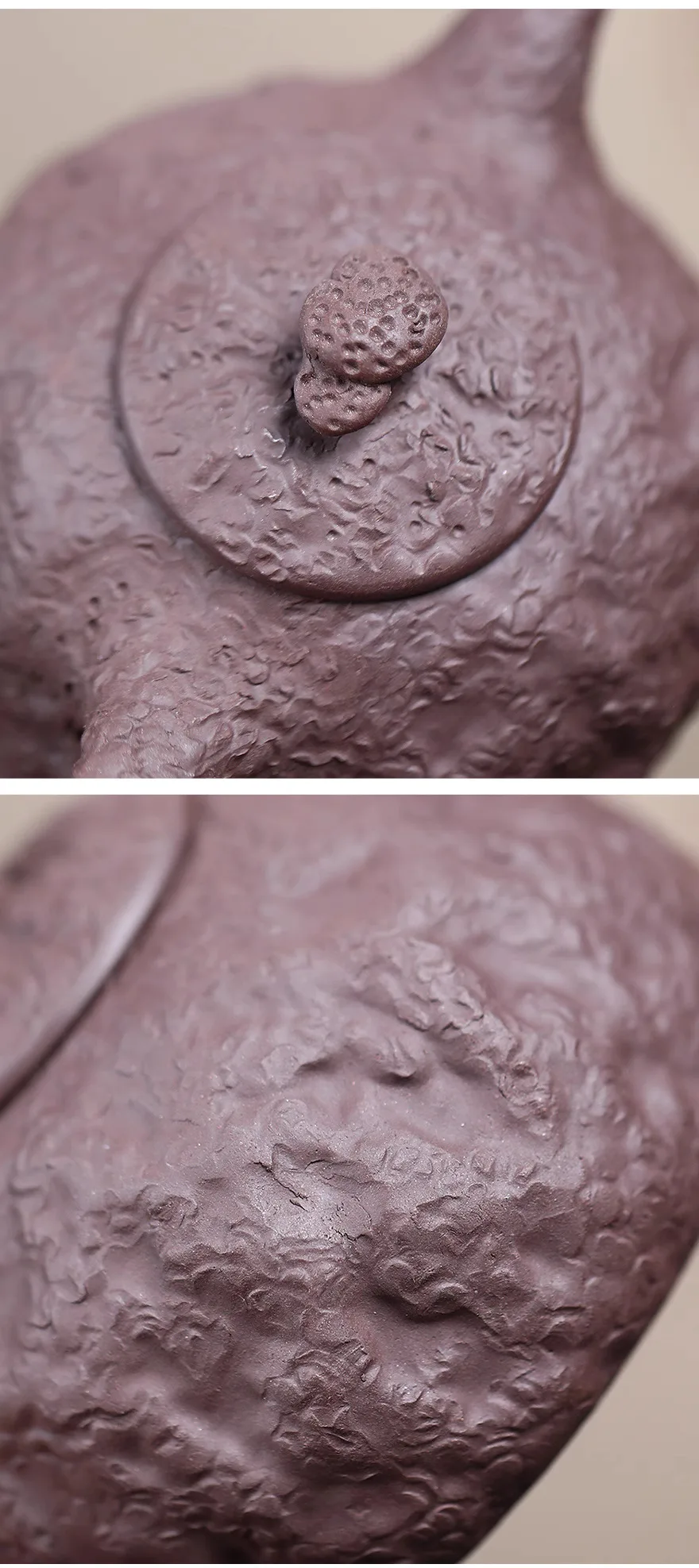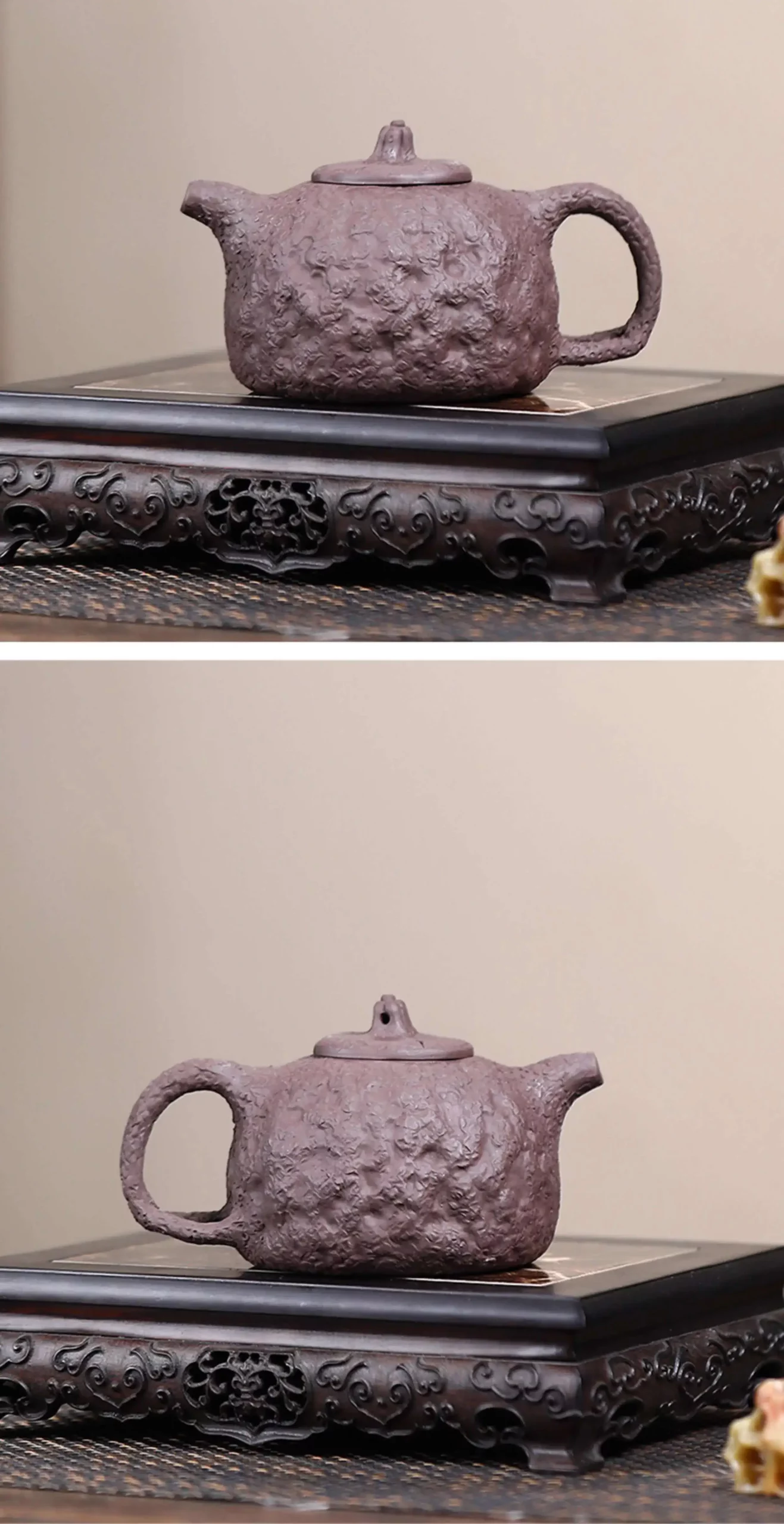 The Hidden Spring 隐泉壶 is a 1.0L Yixing teapot crafted from original mine purple clay sourced from the revered Huanglongshan region. With a bold, textured surface and a rounded, grounded form, this semi-handmade teapot embodies the quiet strength of spring water flowing beneath stone. Its generous capacity and sculptural presence make it ideal for tea gatherings, ceremonial use, or as a collector’s centerpiece.