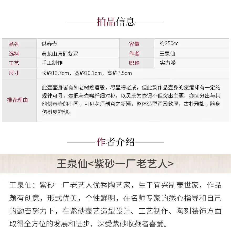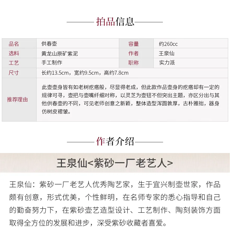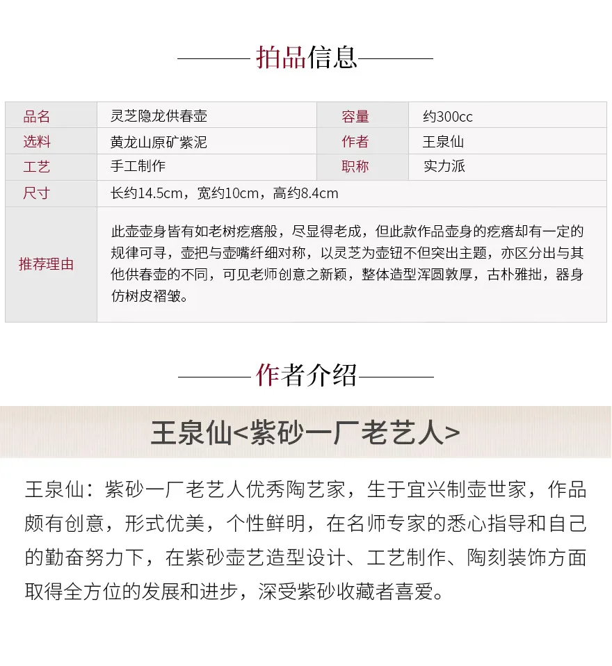 | Material | Yixing Zisha (Huanglongshan Original Mine Purple Clay) |