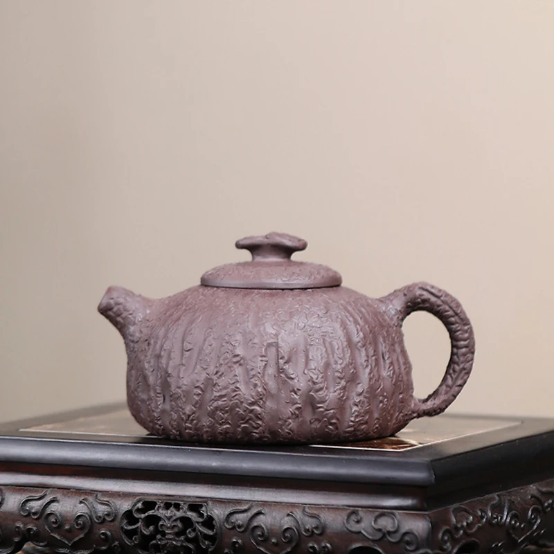 The rugged, bark-like texture and grounded form recall the earliest Yixing teapots, where natural inspiration and humble materials gave rise to timeless design.