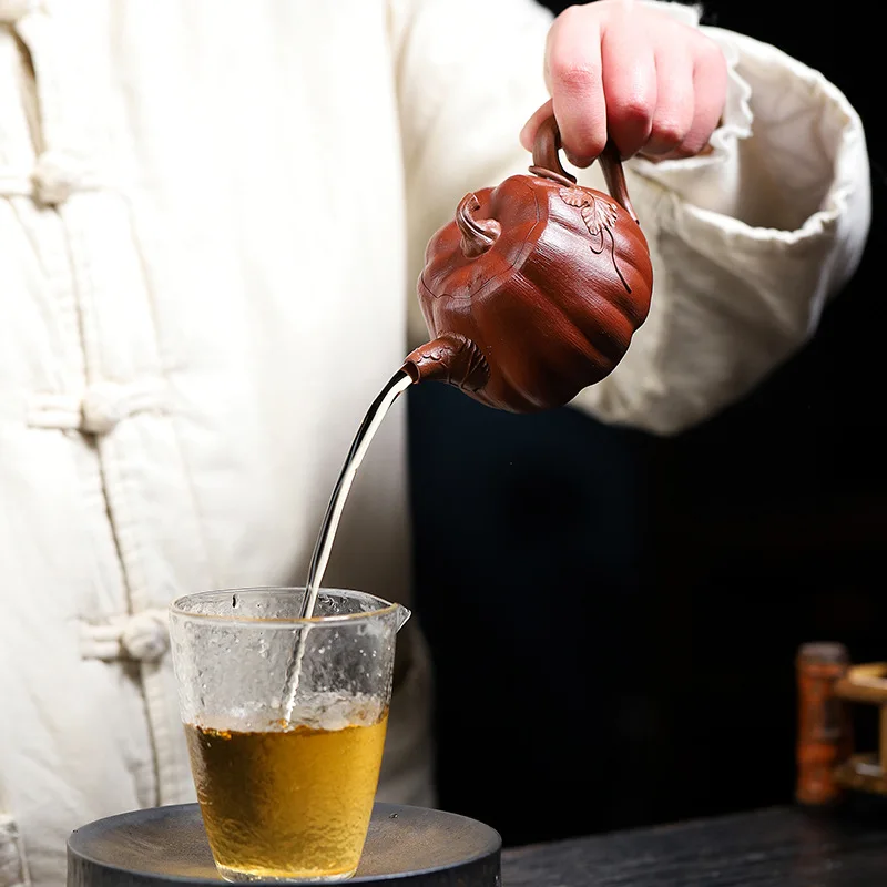 Its tall pumpkin form, Da Hong Pao clay body, and carved vine motif make it a rare and poetic brewing vessel. - Why is this teapot ideal for Gongfu tea?