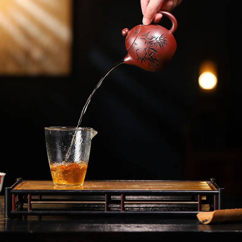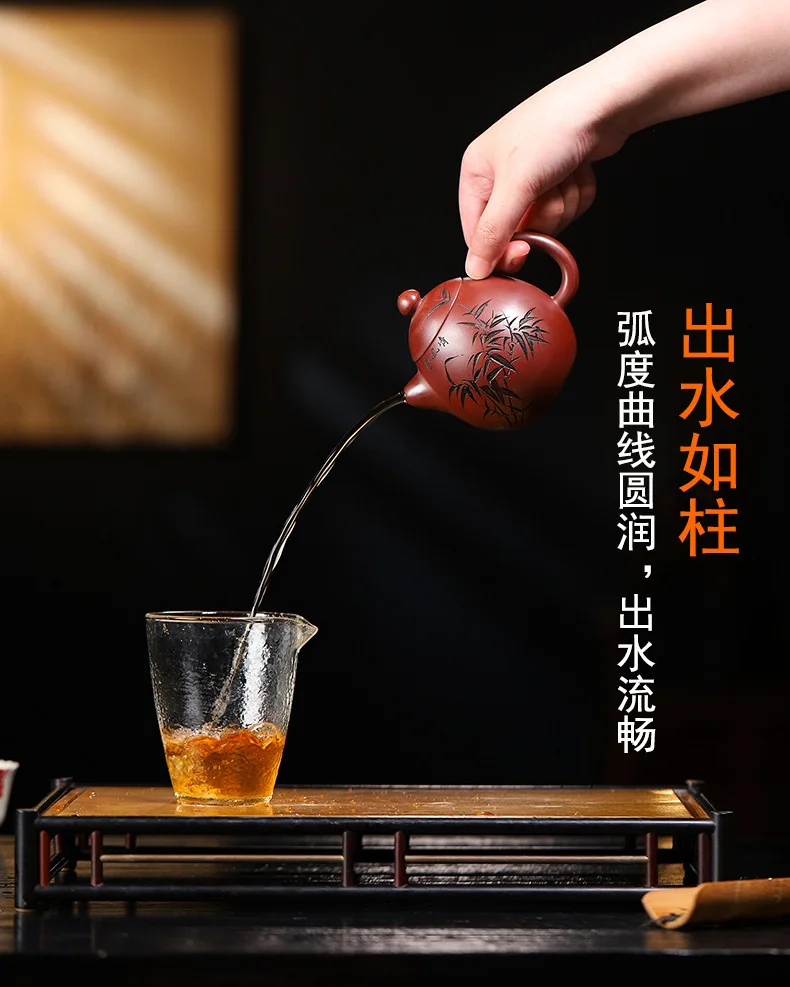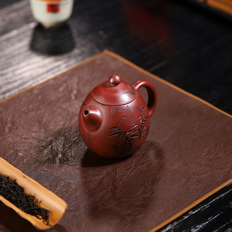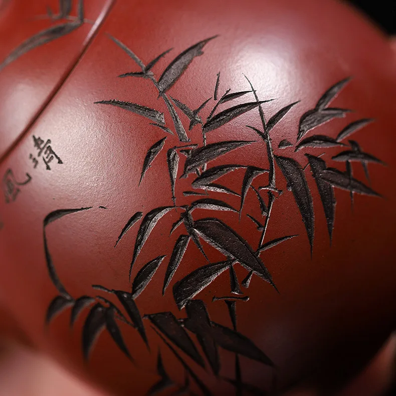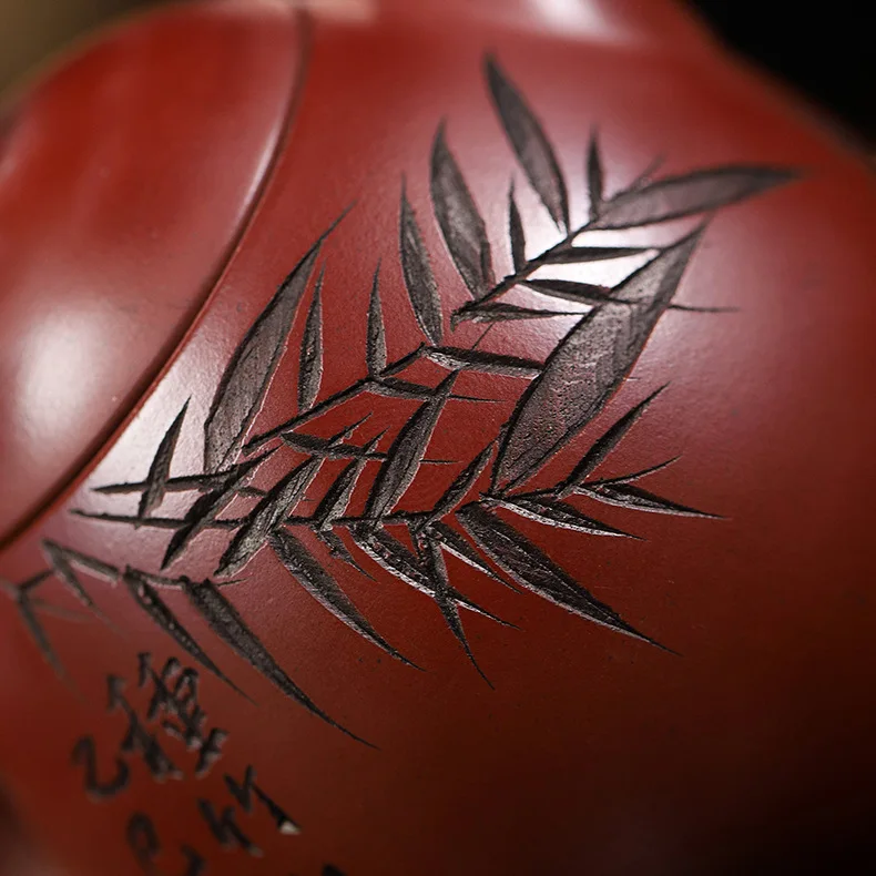 Bamboo represents resilience, humility, and upright character in Chinese culture. Paired with calligraphy, it transforms the teapot into a vessel of both function and philosophy.