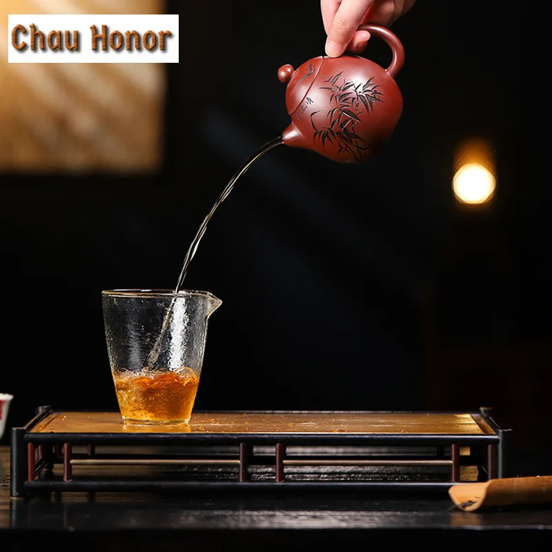 Bamboo represents resilience, humility, and upright character in Chinese culture. Paired with calligraphy, it transforms the teapot into a vessel of both function and philosophy.
