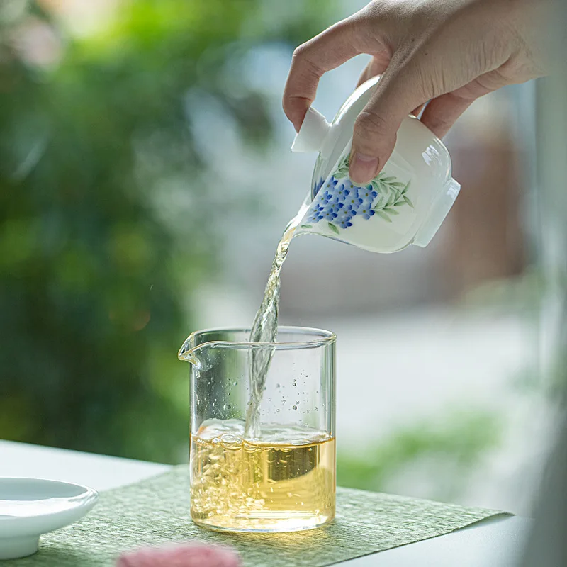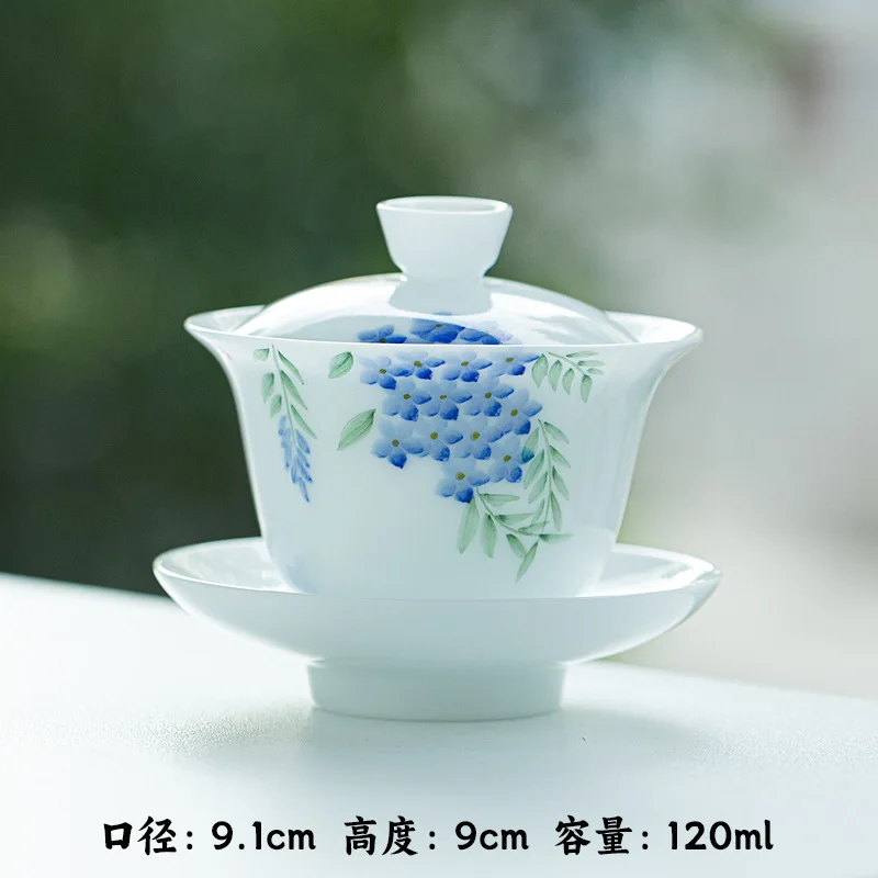 120ml Hand-painted Blue Wisteria Gaiwan Aesthetic Tea Tureen Tea Bowl With Lid Kit Tea Maker Cover Bowl Tea Items Ornaments Gift