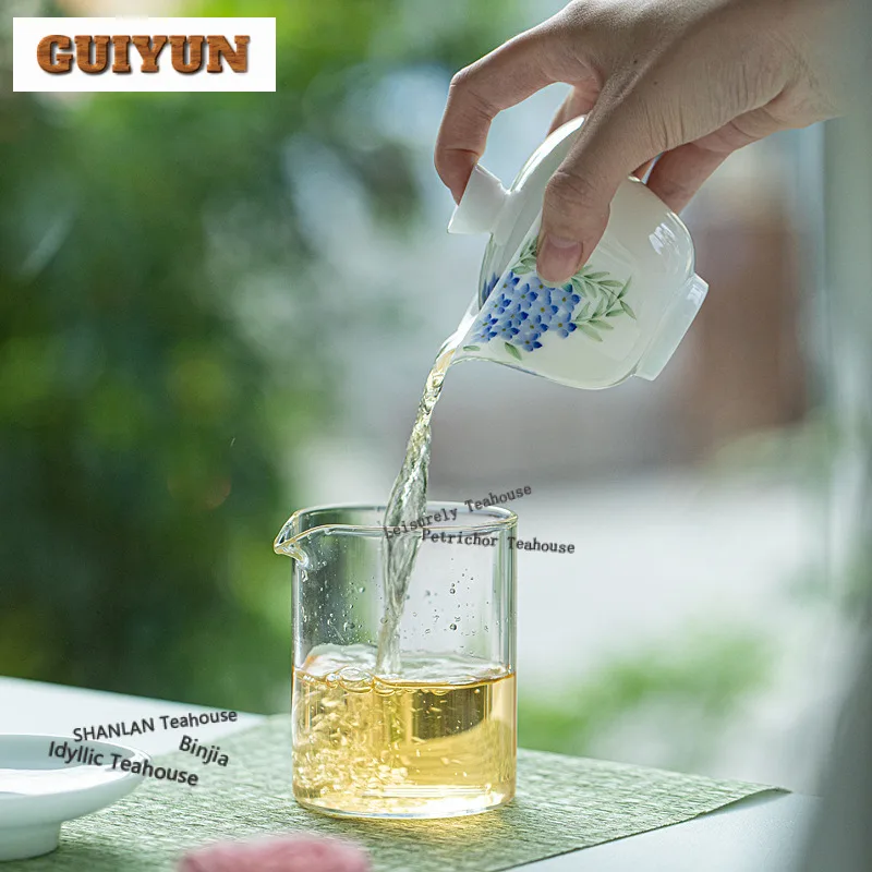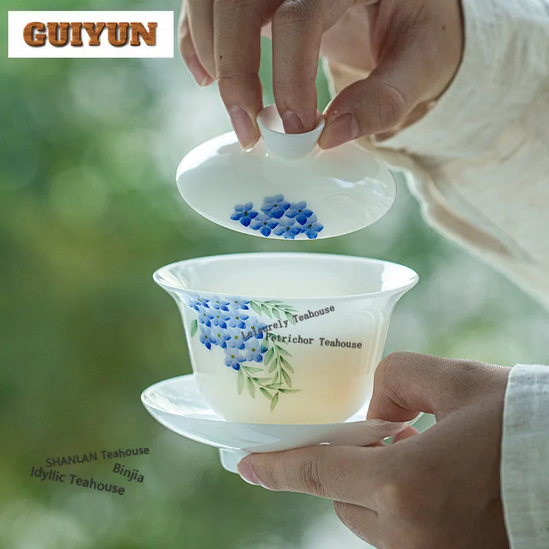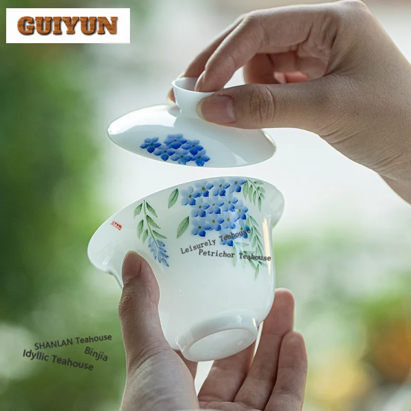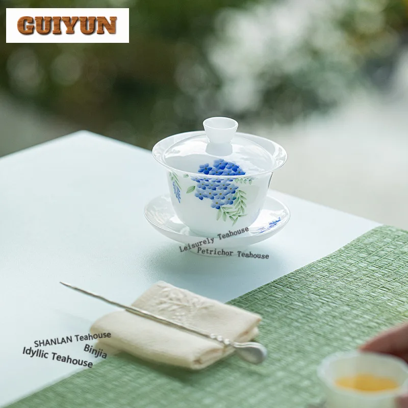120ml Hand-painted Blue Wisteria Gaiwan Aesthetic Tea Tureen Tea Bowl With Lid Kit Tea Maker Cover Bowl Tea Items Ornaments Gift