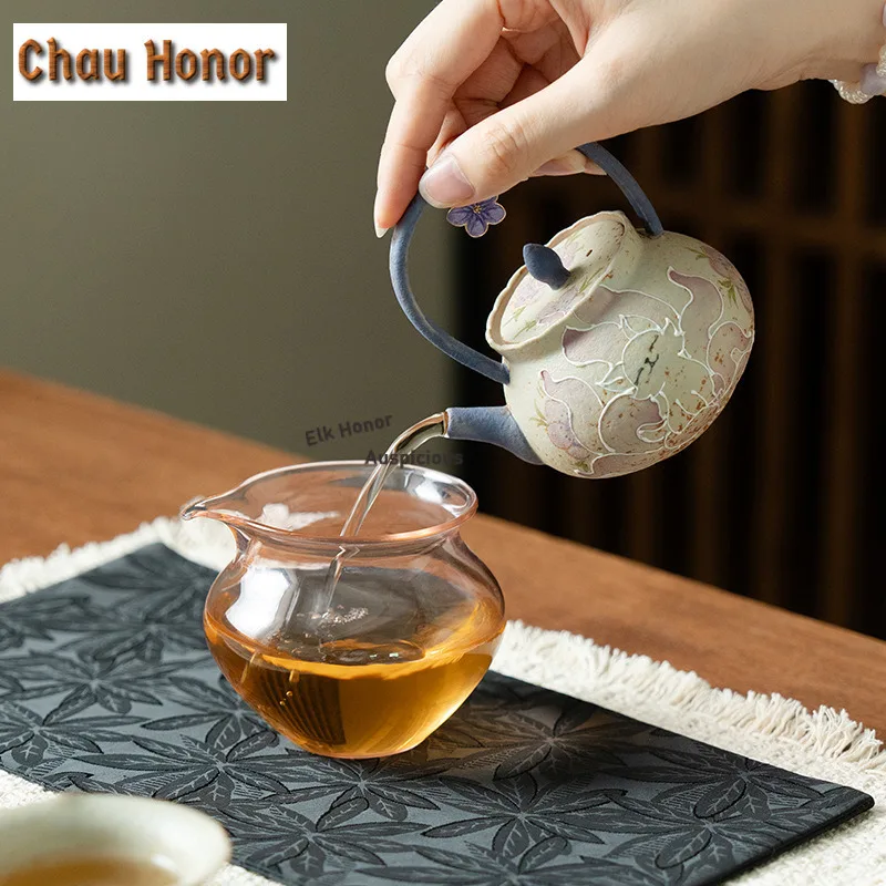 High End Ceramic Ruyi Handle Teapot, Jingdezhen High-Temperature Raw Mineral Glaze Teapot, Exquisite Retro Tea Pot, Single Pot