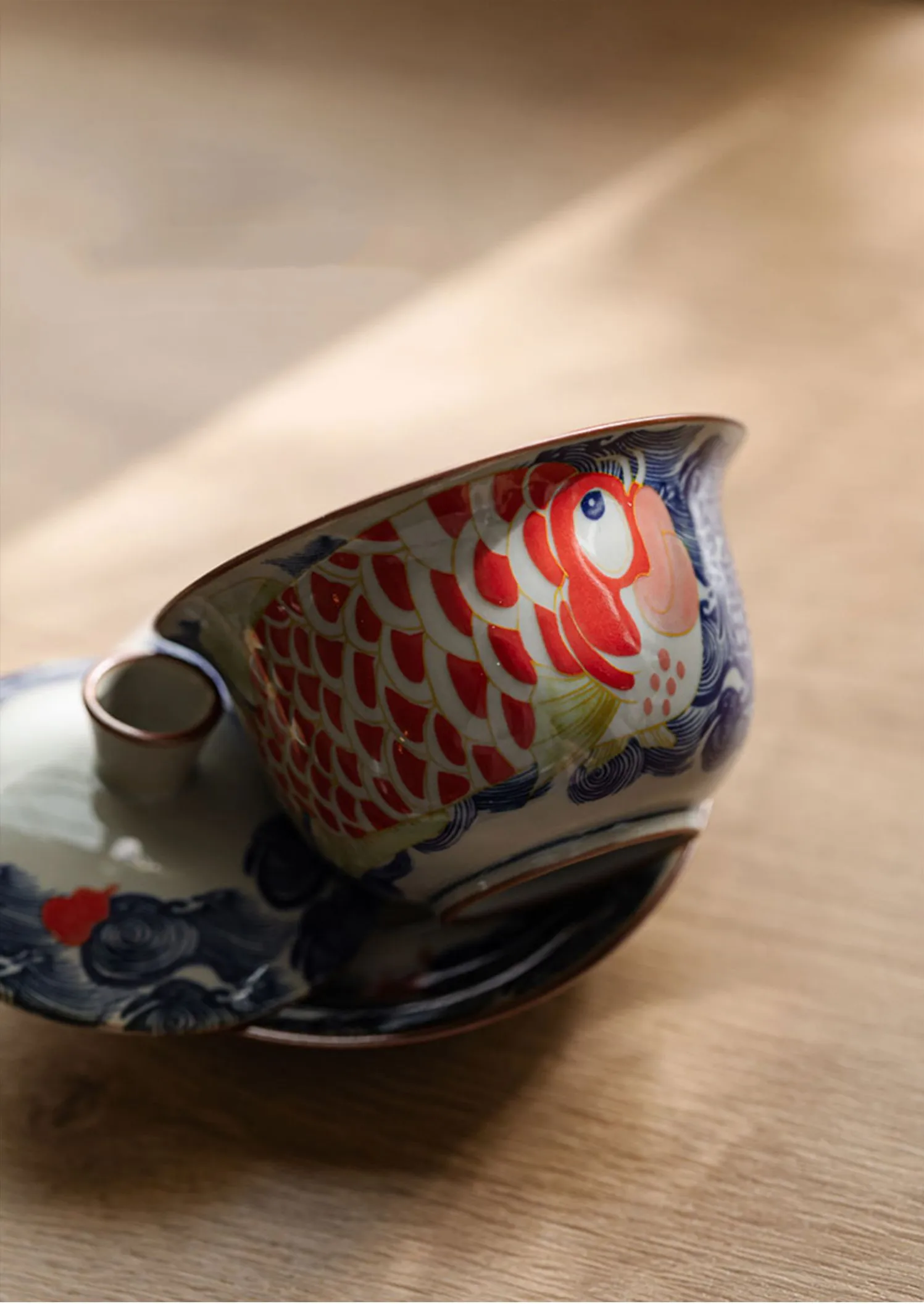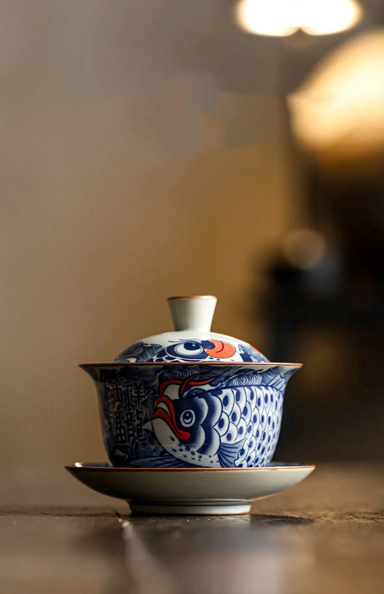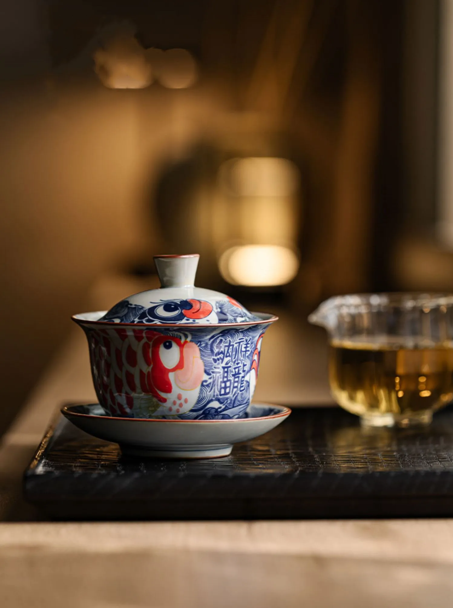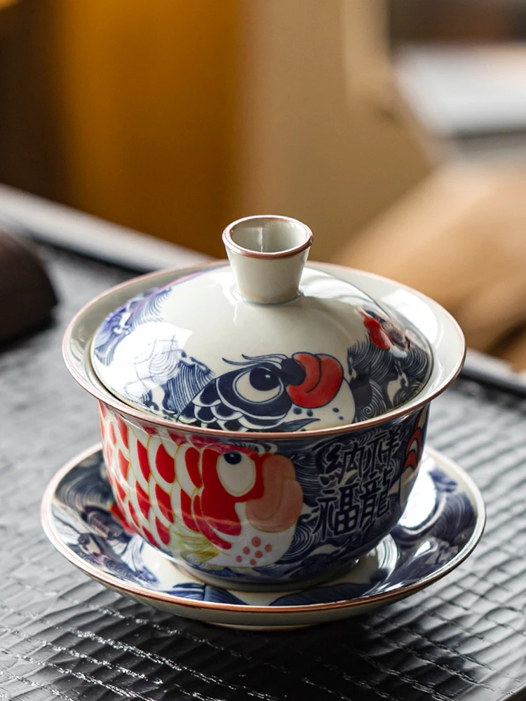 130ml Chinese Blue and White Ceramic Tea Tureen Handmade Fish Gaiwan Beauty Tea Infuser Teacup Household Tea Bowl Teaware