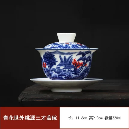 White Porcelain Cover Bowl Hand-painted Sancai Gaiwan Large Blue and White Ceramic Pure White Tea Bowl Kungfu Tea Set Tea Maker