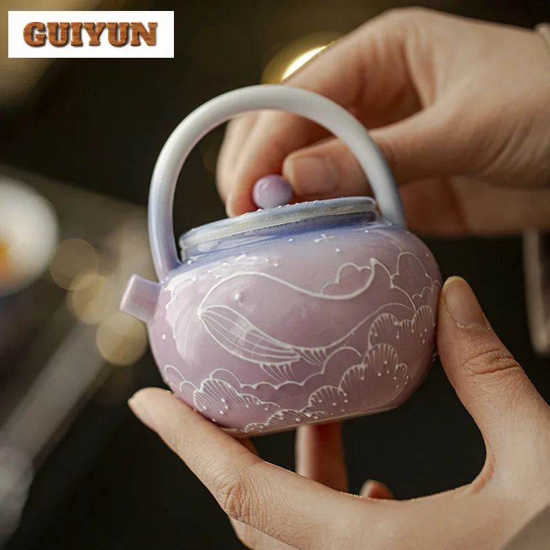 150ml Starry Sky Hand Painted Purple Whale Arita Porcelain Teapot Luxury Tea Infuser Pot Tea Soaking Kettle With Filter For Tea