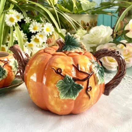 European painted ceramic Pumpkin Teapot Tea Cup Dessert dish cute Tea set American afternoon tea coffee pot home decoration