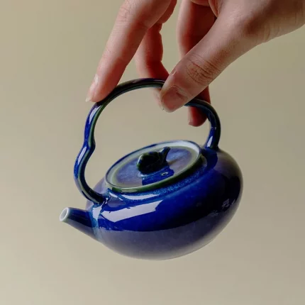 High End Ceramic Ruyi Handle Teapot, Jingdezhen High-Temperature Raw Mineral Glaze Teapot, Exquisite Retro Tea Pot, Single Pot