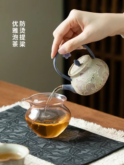 High End Ceramic Ruyi Handle Teapot, Jingdezhen High-Temperature Raw Mineral Glaze Teapot, Exquisite Retro Tea Pot, Single Pot