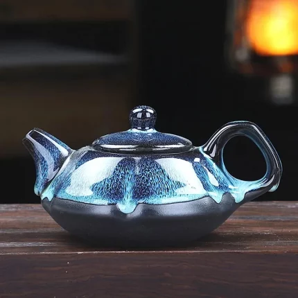 High-Quality Kiln-Transformed Tianmu Glaze Teapot Large Ceramic Kung Fu Tea Set Household Zizai Teapot Jianzhan Tea Brewing Pot