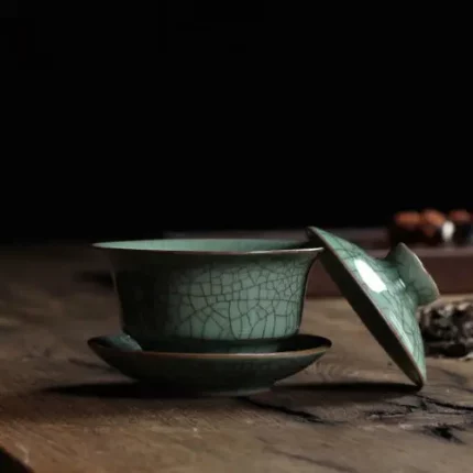 Longquan Celadon Porcelain Gaiwan China Teacups Crackle Glaze Teapot Drinkware 150ml