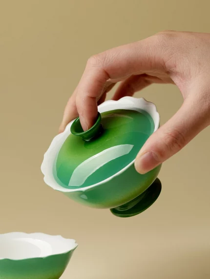 Xingchun Set Emerald Green Gradient Tureen Household Anti-Scald High-End Tea Brewing Bowl Women's Exquisite Ceremony