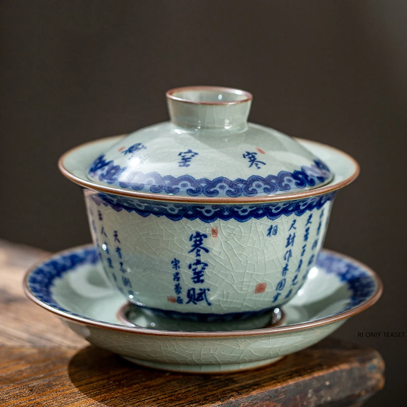 150ml Ru Kiln Twining Lotus Gaiwan Luxury Tea Tureen Household Tea Bowl With Lid Kit Tea Maker Cover Bowl Drinkware Decoration