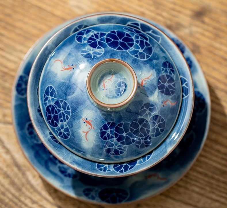 180ml Chinese Antique Ceramic Gaiwan Handmade Lotus Fish Tea Tureen Travel Portable Tea Bowl Household Teaware Accessories