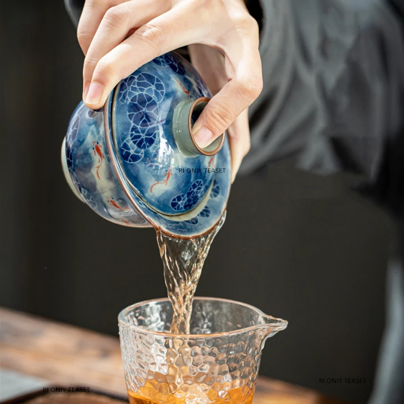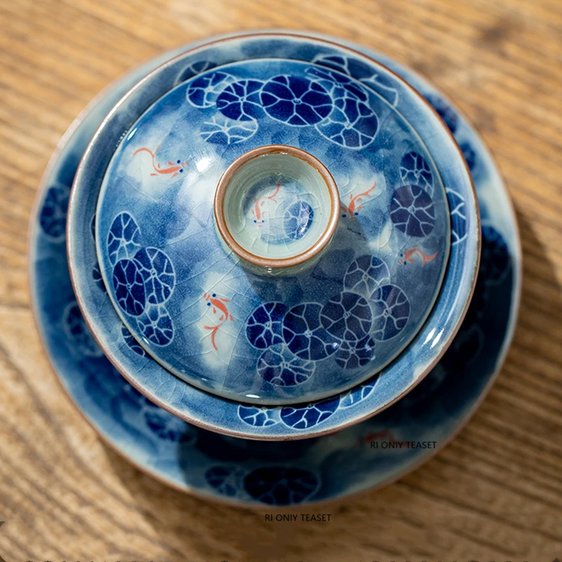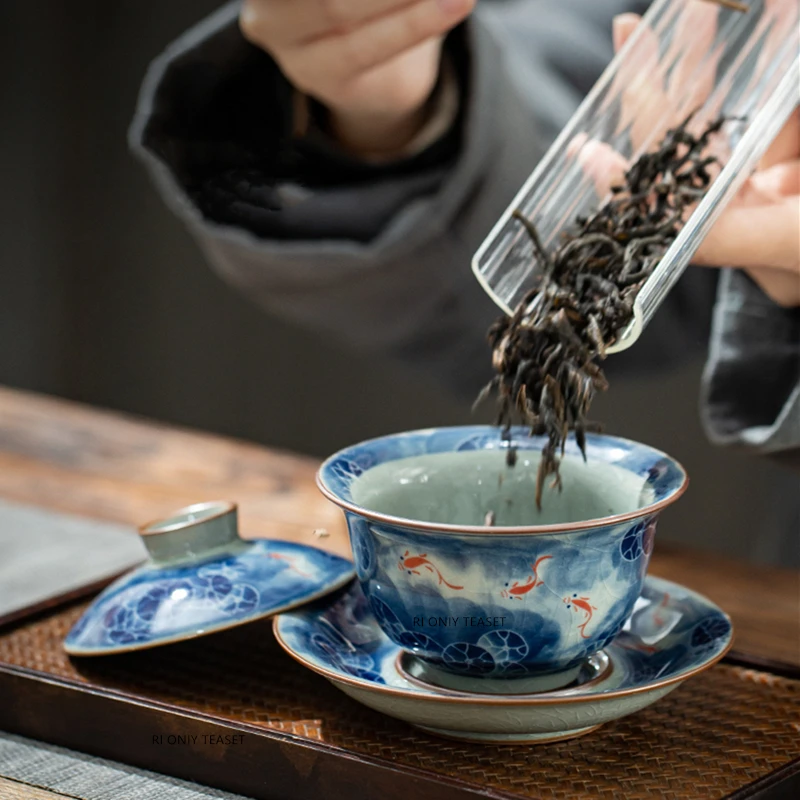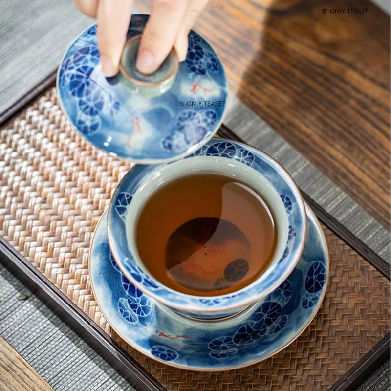 180ml Chinese Antique Ceramic Gaiwan Handmade Lotus Fish Tea Tureen Travel Portable Tea Bowl Household Teaware Accessories