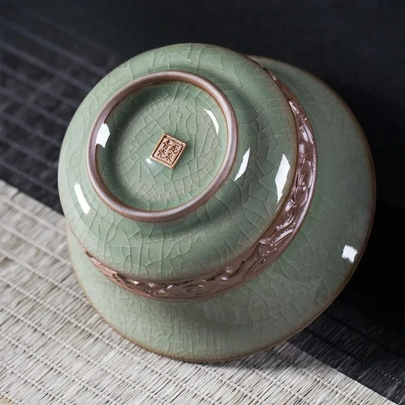 180ml Longquan Bamboo Celadon Tea Tureen Ceramic Tea Cup Kung Fu Teaset Tea Maker Large Single Sancai Tea Bowl Customized Teaset